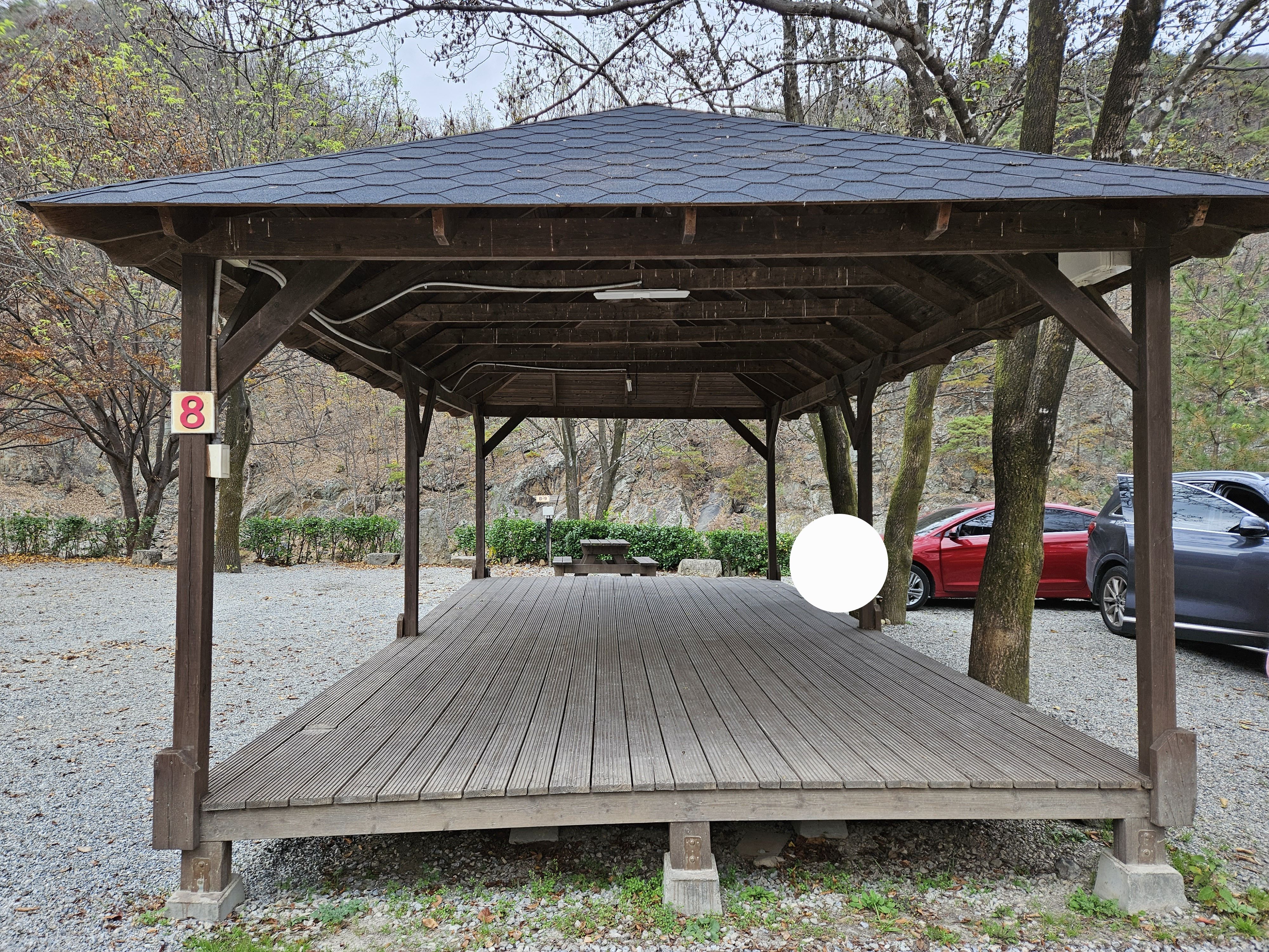 8번 오두막 크기 넉넉하고 비 걱정없이 캠핑 즐길 수 있었어요 강추