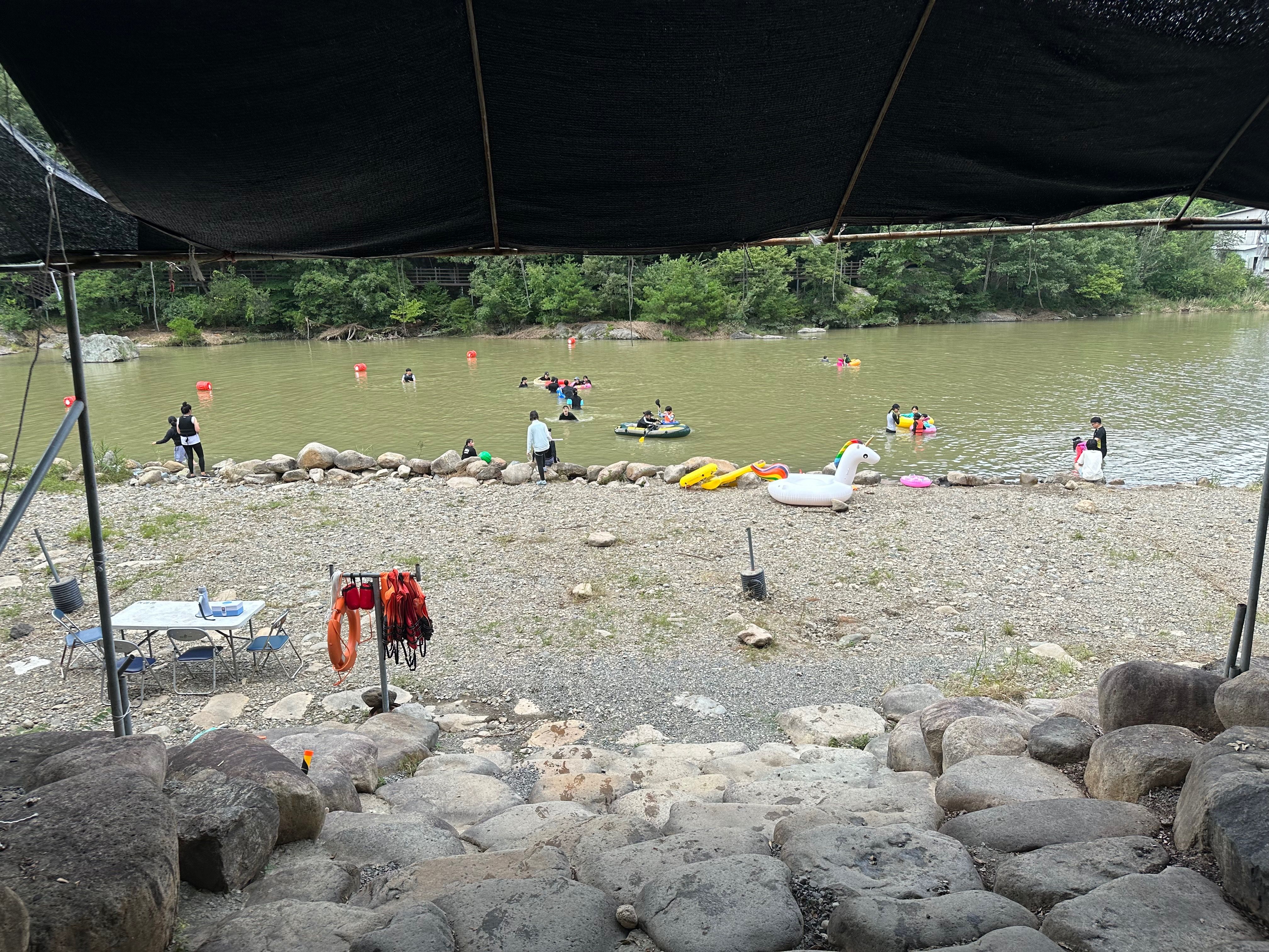 강가자리 예약했었는데 전날 비가 많이 와서 강변자리로 옮겨주셨어요