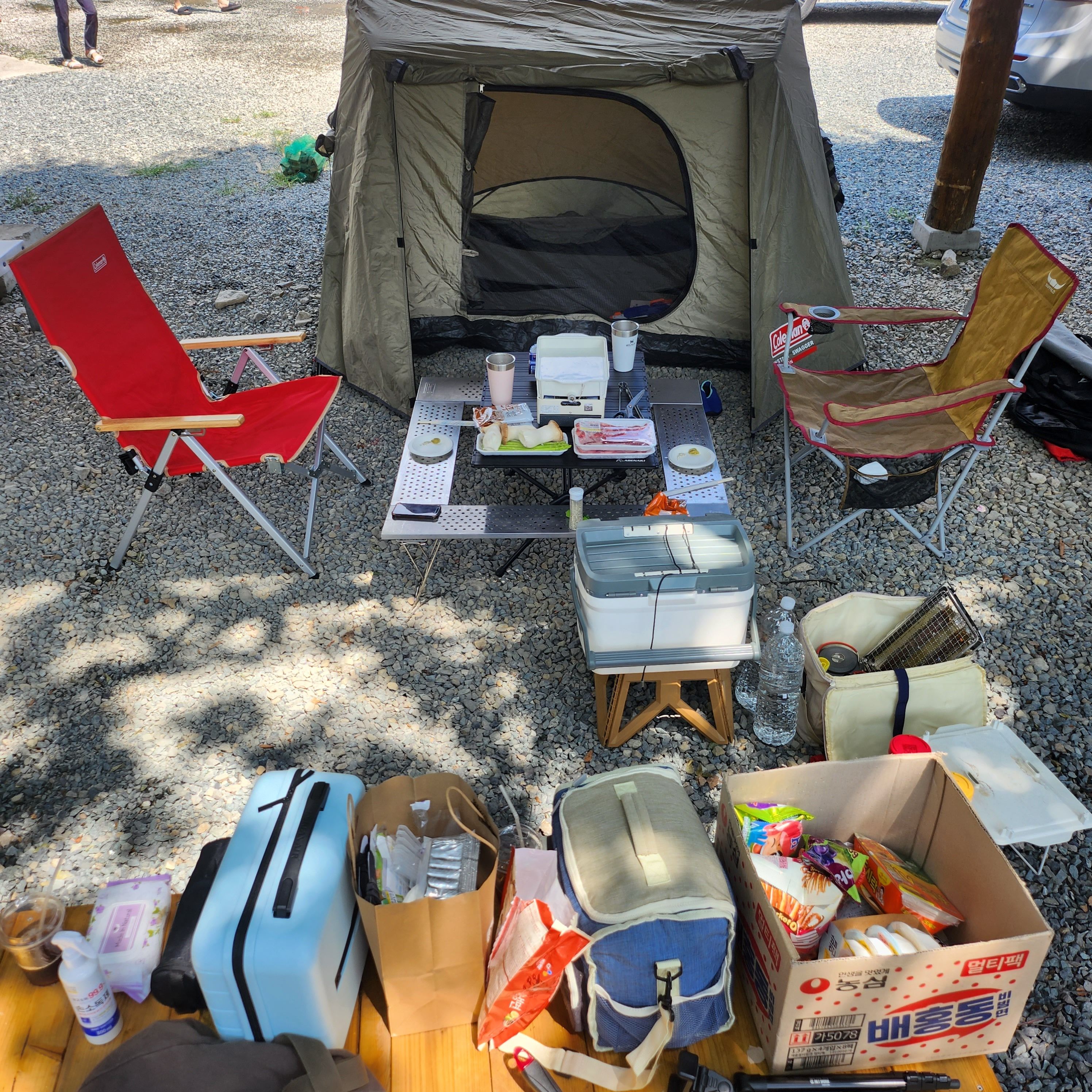 연휴 이틀 앞두고 부산경남 지역 캠핑장 뒤져서 겨우 예약했습니다. 선택지가 없어서 바로 예약하긴 했지만 충분히 즐기고 올만한 곳이었어요. 사이트 간격이 좁다라는 리뷰가 많았는데, 저희는 텐트가 작다보니 충분했고, 양 옆 사이트 캠퍼분들을 잘 만난 덕에 충분히 즐기고 왔습니다.