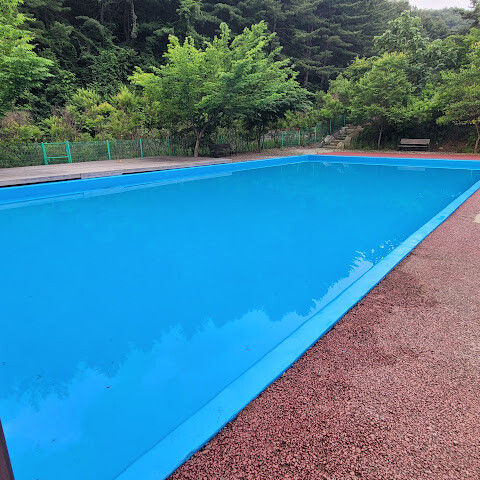 남자친구와 둘이서 캠핑을 다니는데, 서로 선호하는 잠자리가 달라서 (남친은 야전침대, 저는 에어매트) 캠핑을 다닐 때, 사이트를 두개 구매합니다. 이곳은 야영장 선택 후, 선착순 자리 선택제라 남자친구가 일찍가서 자리를 잡았는데요, 제 7야영장은 다른 야영장과 거리가 꽤 있어서 독립적이라고 볼 수 있습니다. 다만, 이 날 비가 왔던 우중캠핑이라 화장실 등과 가까운 수영장 옆 사이트에 자리를 잡았고요 사이트 간격은 도심에서 떨어진 만큼 넓습니다. 제7야영장 휀스 너머로는 계곡물이 흐르고, 주차한 방향쪽에는 나무가 울창해서 산림욕 하는 기분이 납니다. 다만 소나무 아래 피칭은 유의하세요. 송진이 ^^;; 7야영장은 가족단위가 많아 아이들 소음이 있습니다. 공공시설은 깨끗하게 관리되고 있어 좋았습니다.