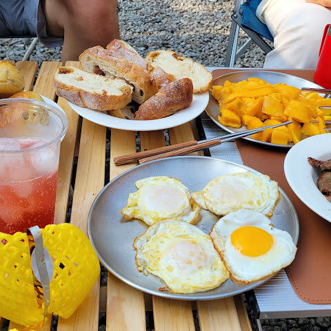 너무 좋아요~~ 날씨두 좋구 바람도 살살 부는 좋은 날이었습니다~ 나무가 많아서 너무 좋구요~ 쾌적하구 사이트마다 몇팀씩 머물수 있는것이 좋아요~ 주인분이 계란이랑 파를 주셔서 아침에 볶음밥에 넣었다고 엄마가 그러셨는데 관리사무소에 계신 예쁜분두 그렇고 참 친절하십니다~ 퇴실시간두 다른곳보다 늦어서 좋은데 나가라고 재촉하지 않으셔서 편안하게 쉬다 나왔어요~ 캠핑한지 20년즘 됐는데 요즘 많이 생긴 캠핑장들처럼 너무상업적이지 않구 아침에 새소리도 정말 많이 들리구 조용하고 편안했습니다~ 감사합니다^^