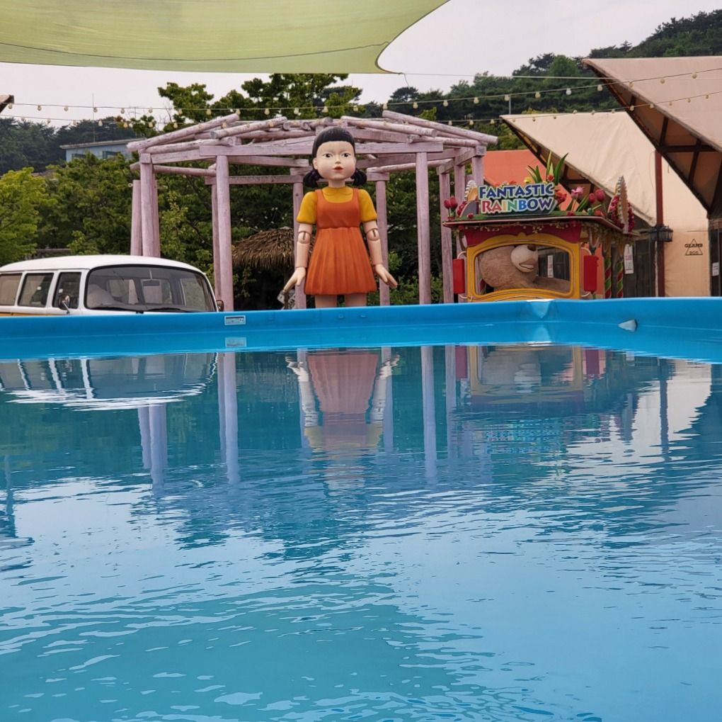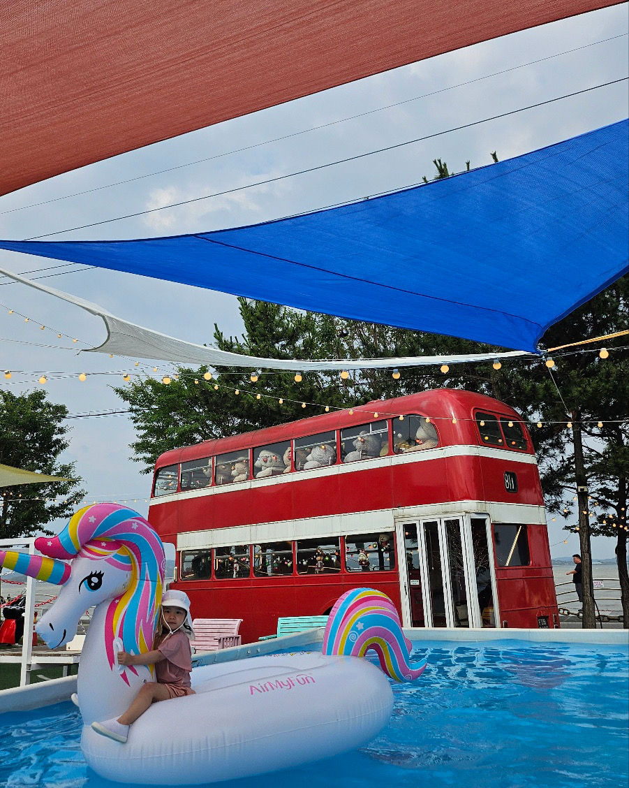 비오는날 물놀이 걱정했는데 살도 안타고 위에 가림막도 있어서 오히려 좋았어요! 관리를 잘 하시는지 깨끗해서 좋았습니다!