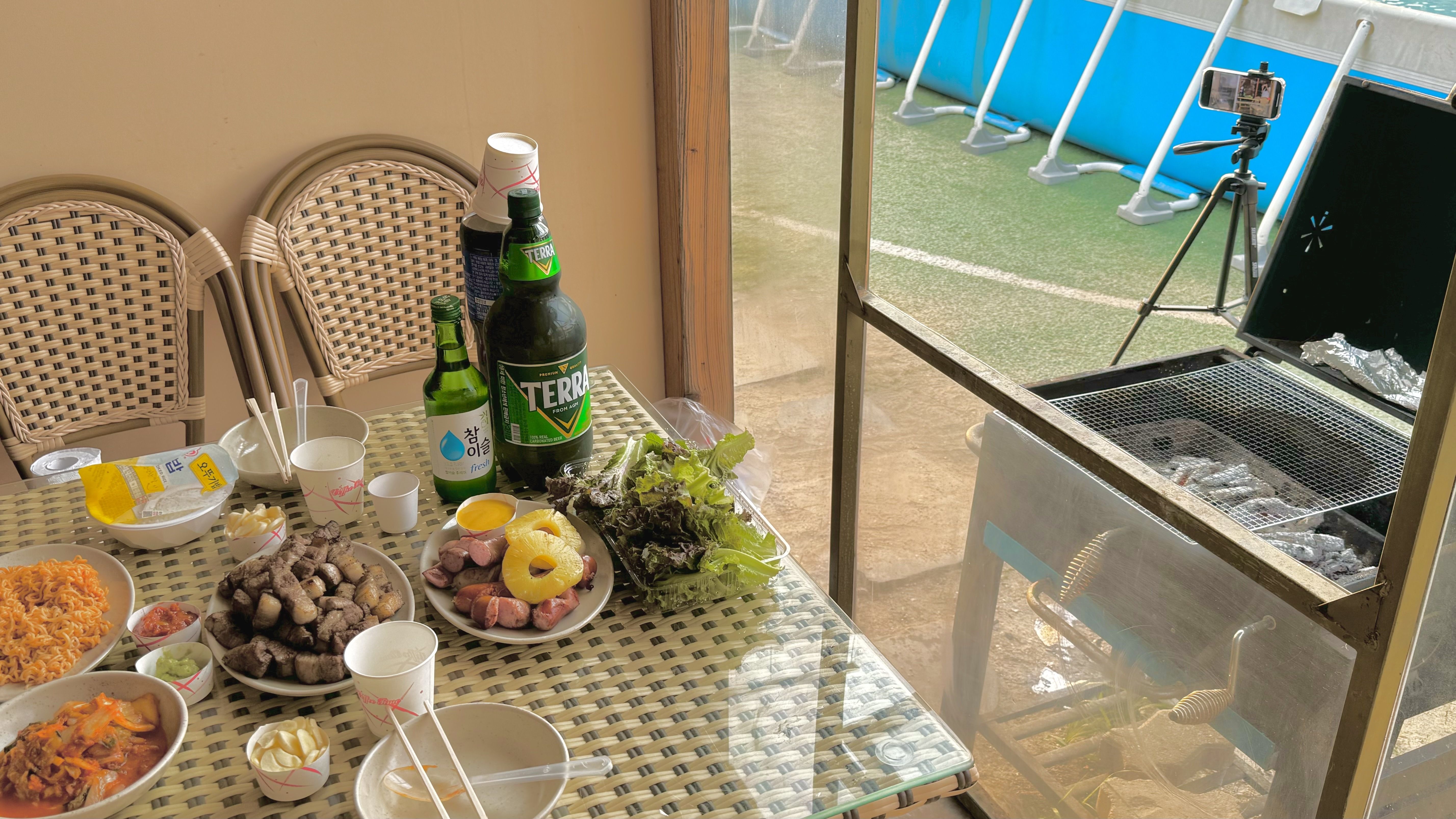 이용요금에 “석식 바베큐 무한리필”이 있어서