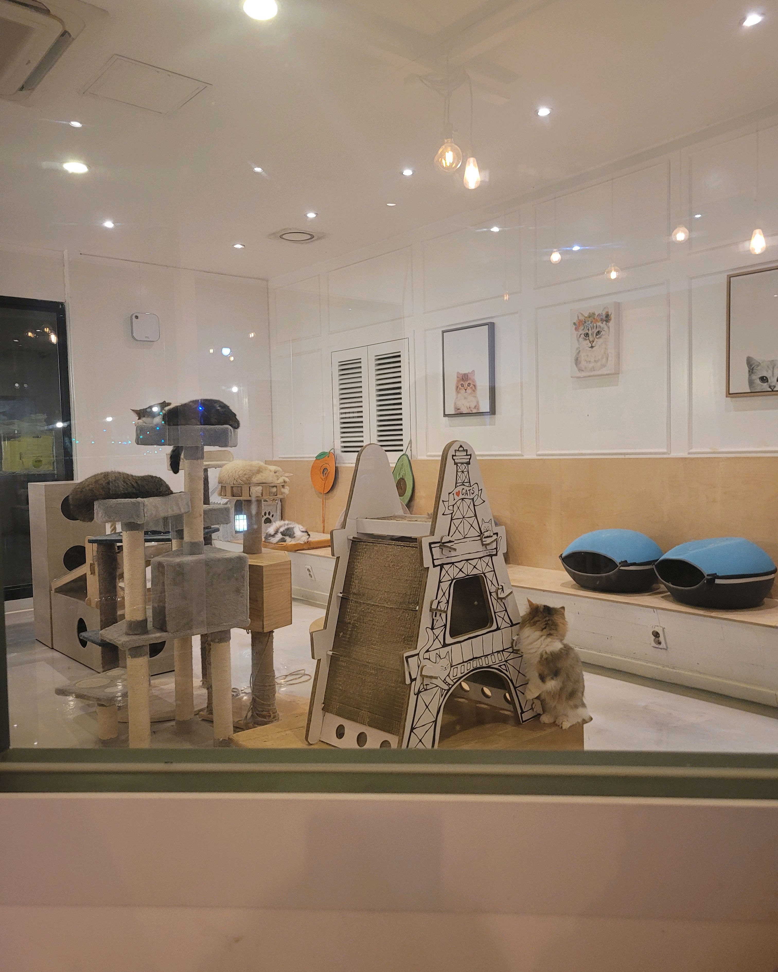 있습니다 강아지가 뭘 하든 고양이들은 신경도 안쓰는데 사장님이 굉장히 신경 쓰셔서 만든 공간 같았습니다