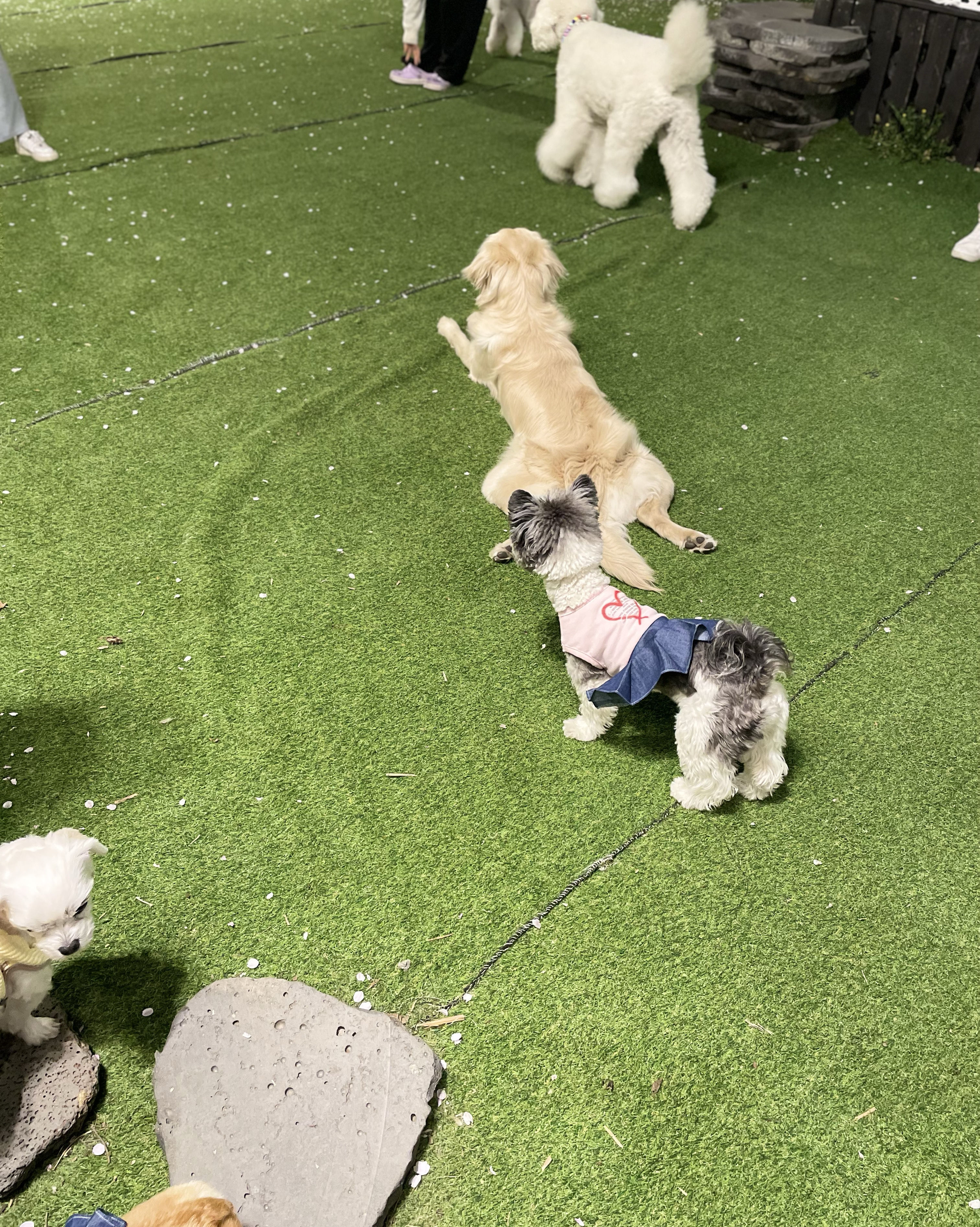 처음에 당황한게 무색하게 강아지들이 매너가 정말 좋고 견주분들도 케어를 굉장히 잘해주셔서 조금의 문제도 없었습니다 오히려 저희 강아지가 다른 강아지한테 실수한게 있을까 걱정이네요