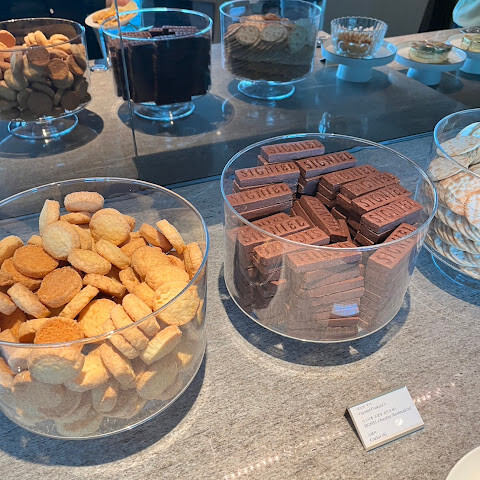 살롱 드 시그니엘/클럽룸 이용. 아깝네요: 간식/다과는 정말 웃기게 나왔어요. 음료는 샴페인만 있고 2시간 동안만 제공되더라고요. 2시간 동안 클럽이 꽉 찼다고 들었어요. 출입이 거부됐어요. 출입이 가능해지면 연락해 주시겠어요?!?!? 음식: 뷔페를 좋아하지 않는 이상, 선택지는 1. 차오란(미슐랭 등급, 훌륭하고 맛있으며 서비스도 훌륭함) 2. 룸서비스 3. 로비에서 케이크를 제공했는데, 한 조각씩 주는 게 아니라 통째로 주는 거였어요. 다시 한번 말하지만, 혼자 여행하는 저에게 이 거대한 호텔에서의 음식 선택은 놀랍게도 마치 푸드 사막에 있는 것 같았어요. ㅎㅎ