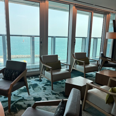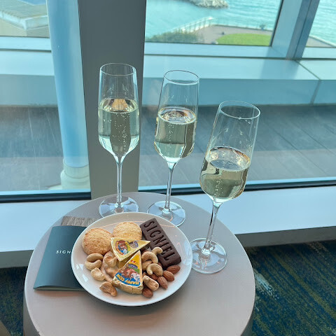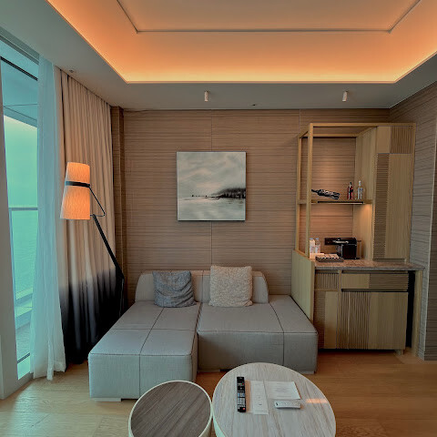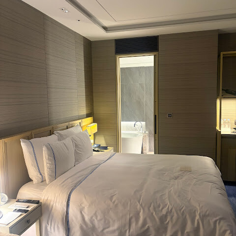 3박 숙박의 1/3이 지났는데, 벌써 이 호텔이 최고급 럭셔리 호텔이라는 것을 알 수 있습니다. 오후 1시 45분에 도착해서 붐비는 로비에 도착했지만, 아주 체계적인 체크인 시스템을 통해 짐을 맡아주고 편안한 좌석으로 안내해 주어서 기다리지 않아도 되었습니다. 객실은 흠잡을 데 없이 깔끔하게 꾸며져 있었고 바다 전망이 보이는 꽤 넓은 공간이었습니다. 뷰 라운지에 도착했는데, 사시미, 맛있는 고기, 샐러드 등 풍성한 뷔페가 정말 훌륭했습니다. 어젯밤에는 차오란 중식당에서 고급 저녁 식사를 했습니다. 침대가 너무 편안해서 9시간이나 잤습니다!