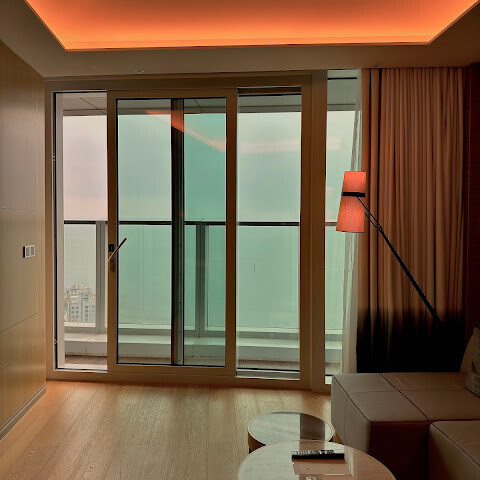 바다와 해변이 한눈에 들어오는 멋진 전망을 자랑하는 아름다운 호텔입니다. 사진 찍기에도 최고였어요. 직원분들도 정말 친절하고 도움이 많이 됐습니다. 해변 바로 옆에 위치하고 주변에 맛집도 많아서 위치도 훌륭했어요. 호텔은 자동 커튼이 설치되어 있는 등 시설도 깔끔하고 현대적이었습니다. 제가 가본 호텔 중 단연 최고였어요.