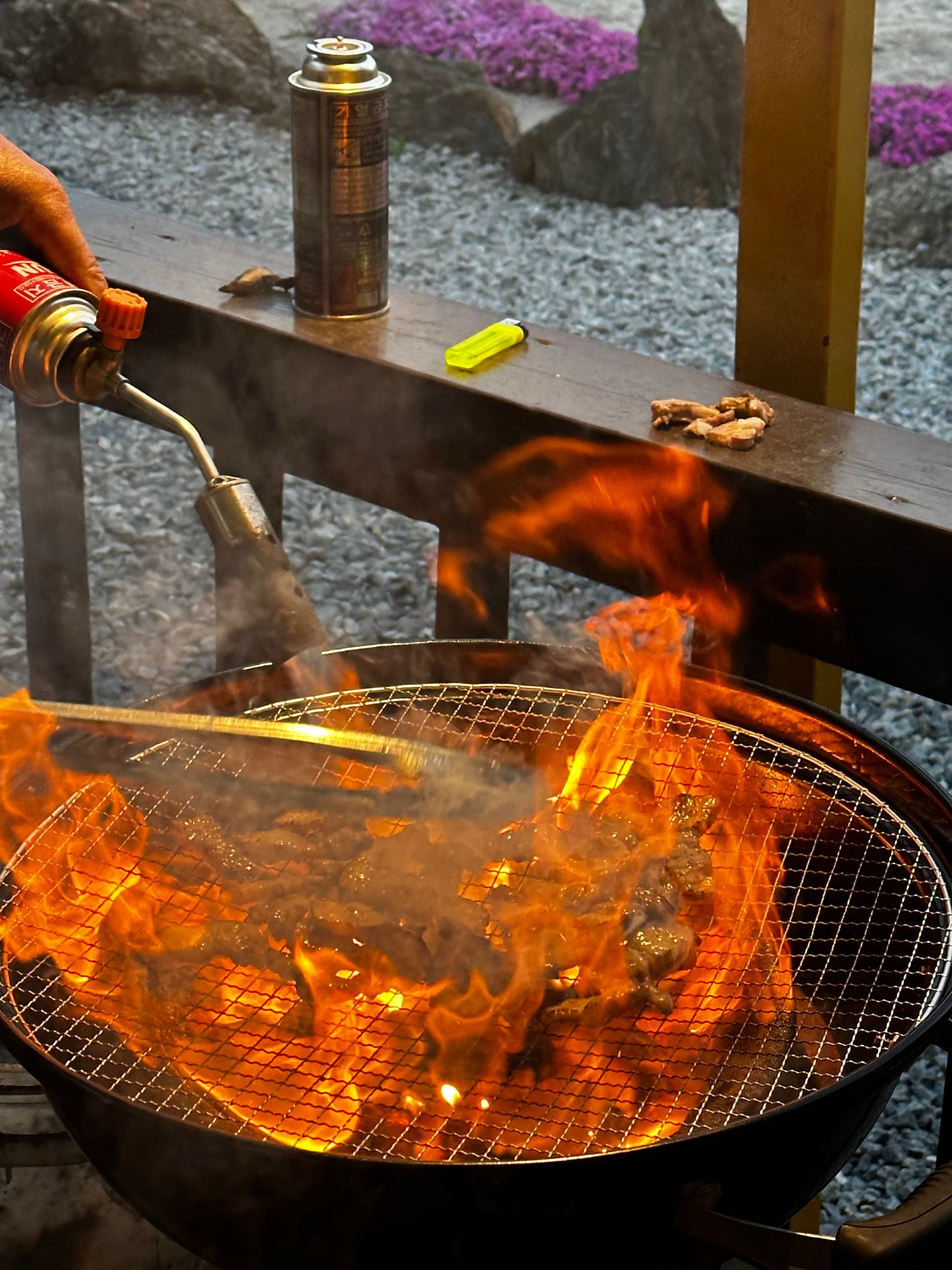 처음엔 고기도 사장님이 토치로 구워주시는데