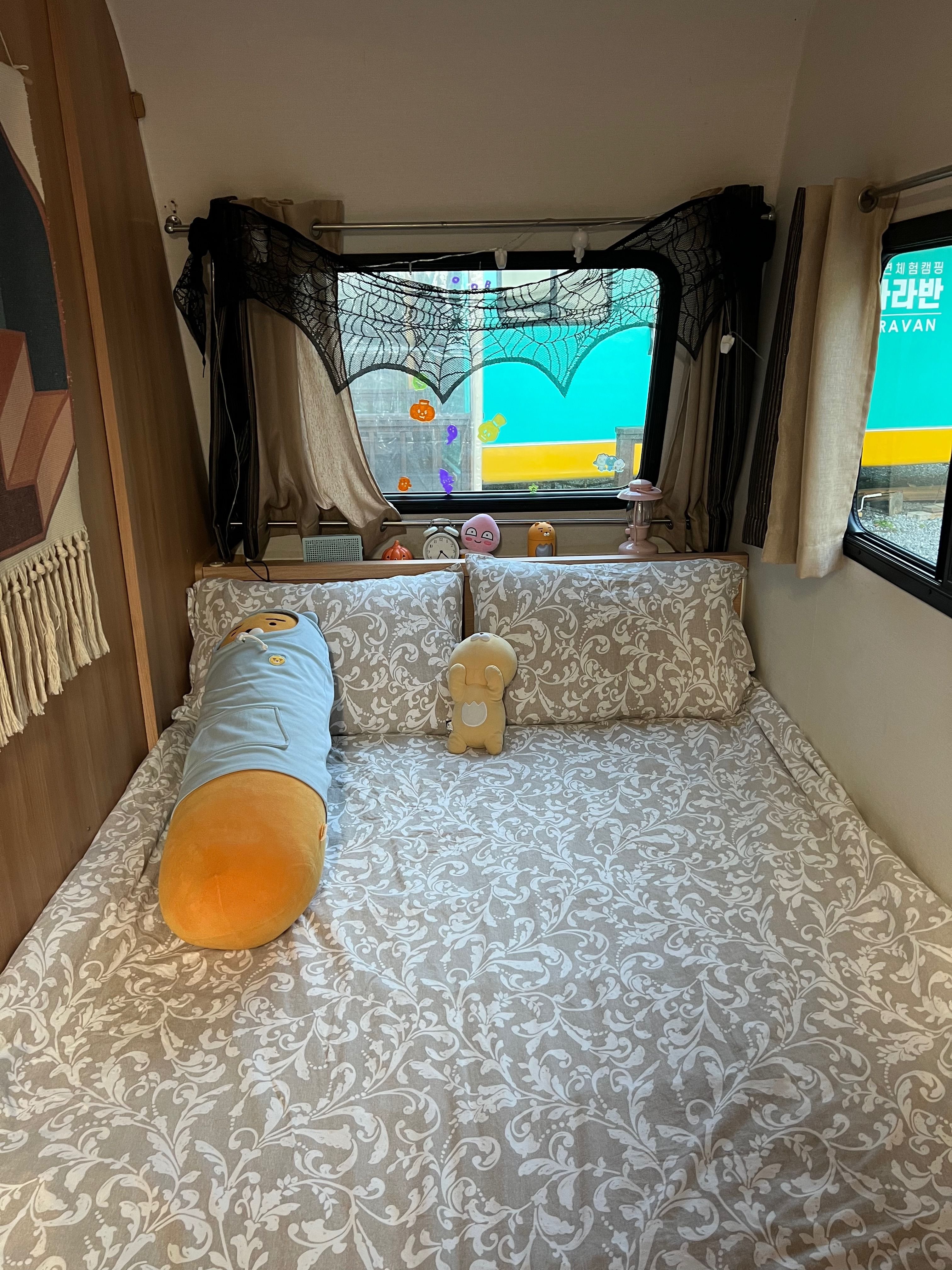 남자친구랑 둘이 카라반 처음으로 이용했었는데 불편함없이 내부외부 깨끗하고 너무좋았어요 특히 아늑해서 쉬기좋았고 평일이라 3대중 저희뿐이라 더좋았네용!! 지금 할로윈때라 앞에 마당에 할로윈으로 꾸며져있고 살짝 걸어나오면 도로앞에 산책할수있는곳도 나오는데 뷰가 진짜 최고예요👍🏻👍🏻