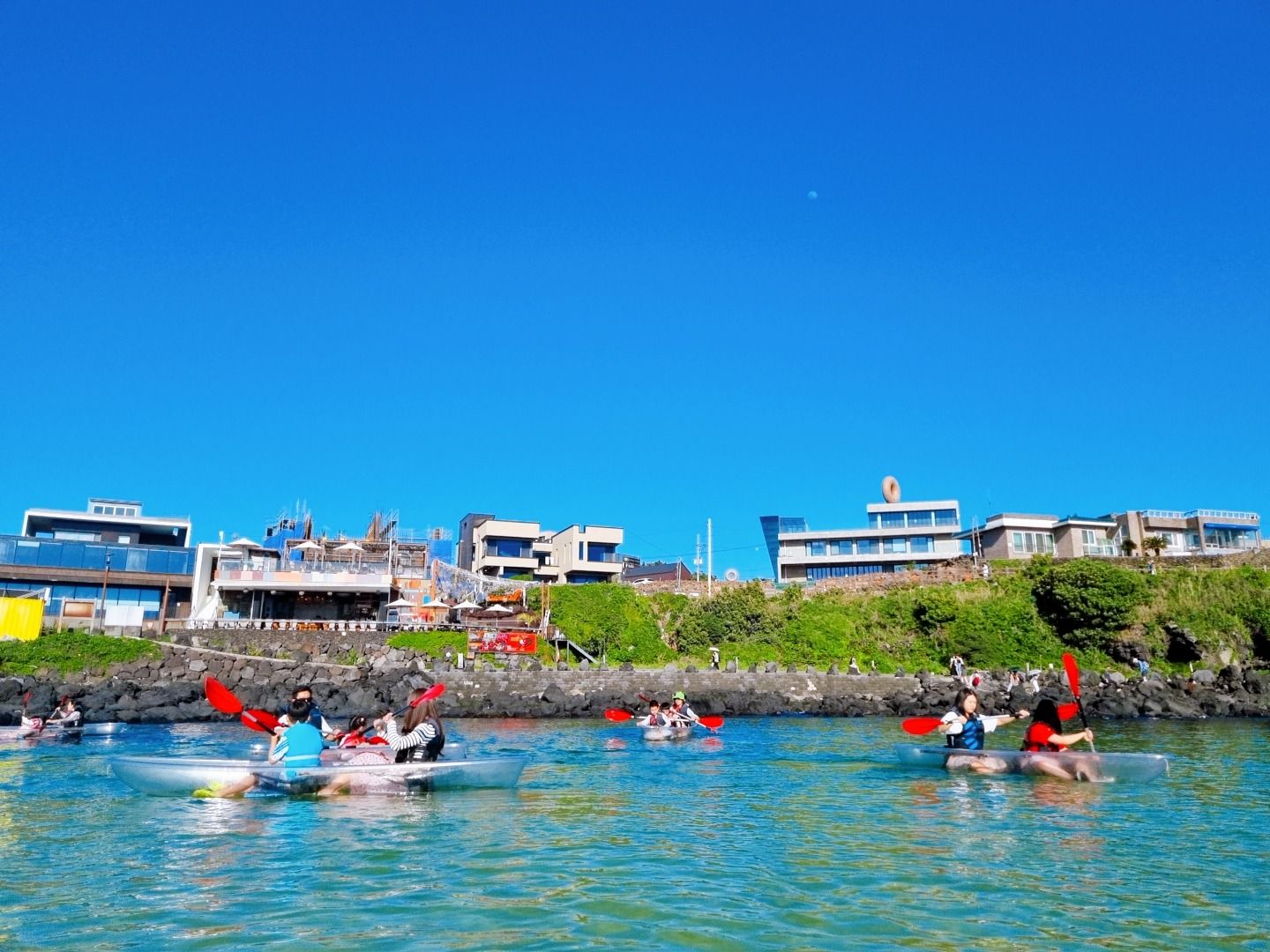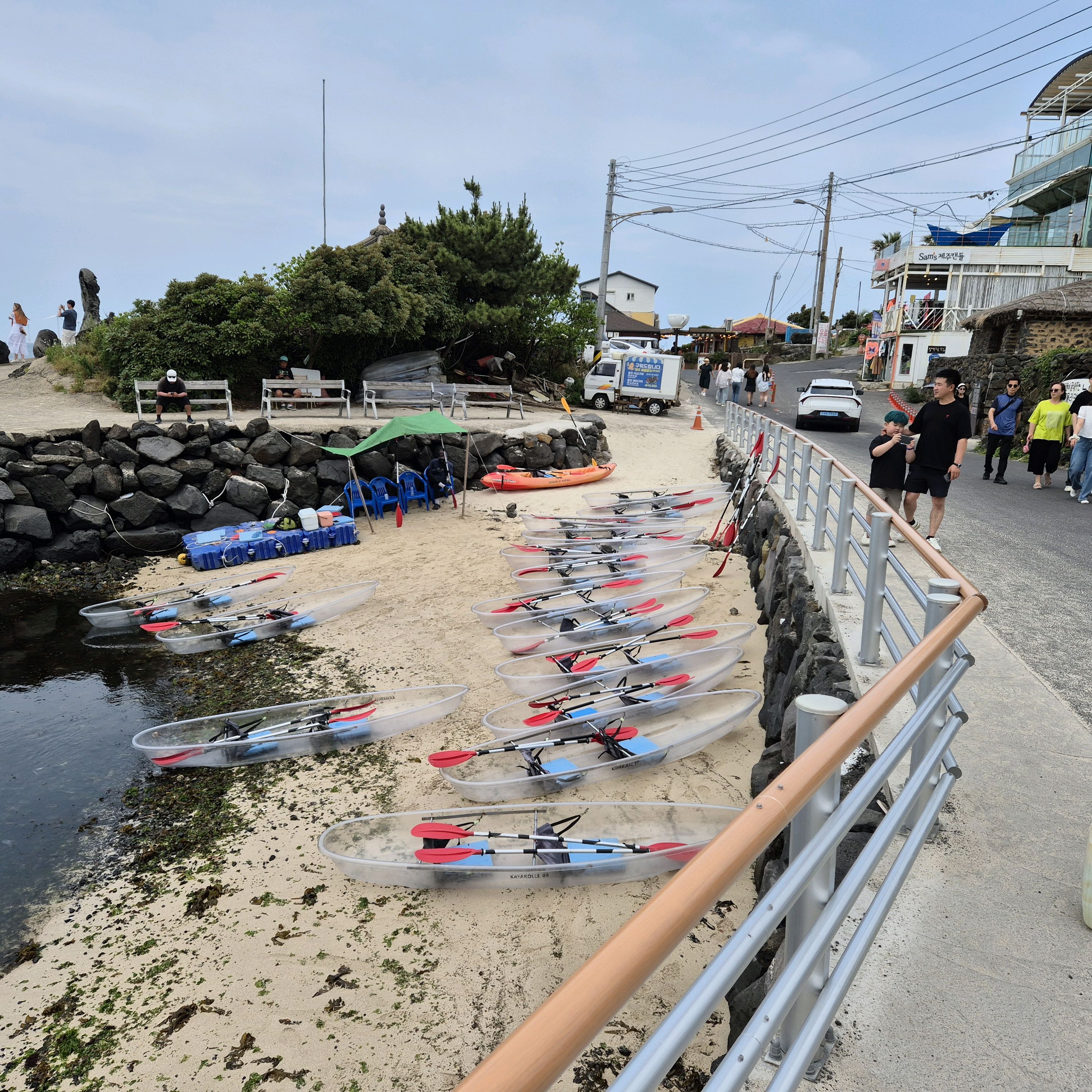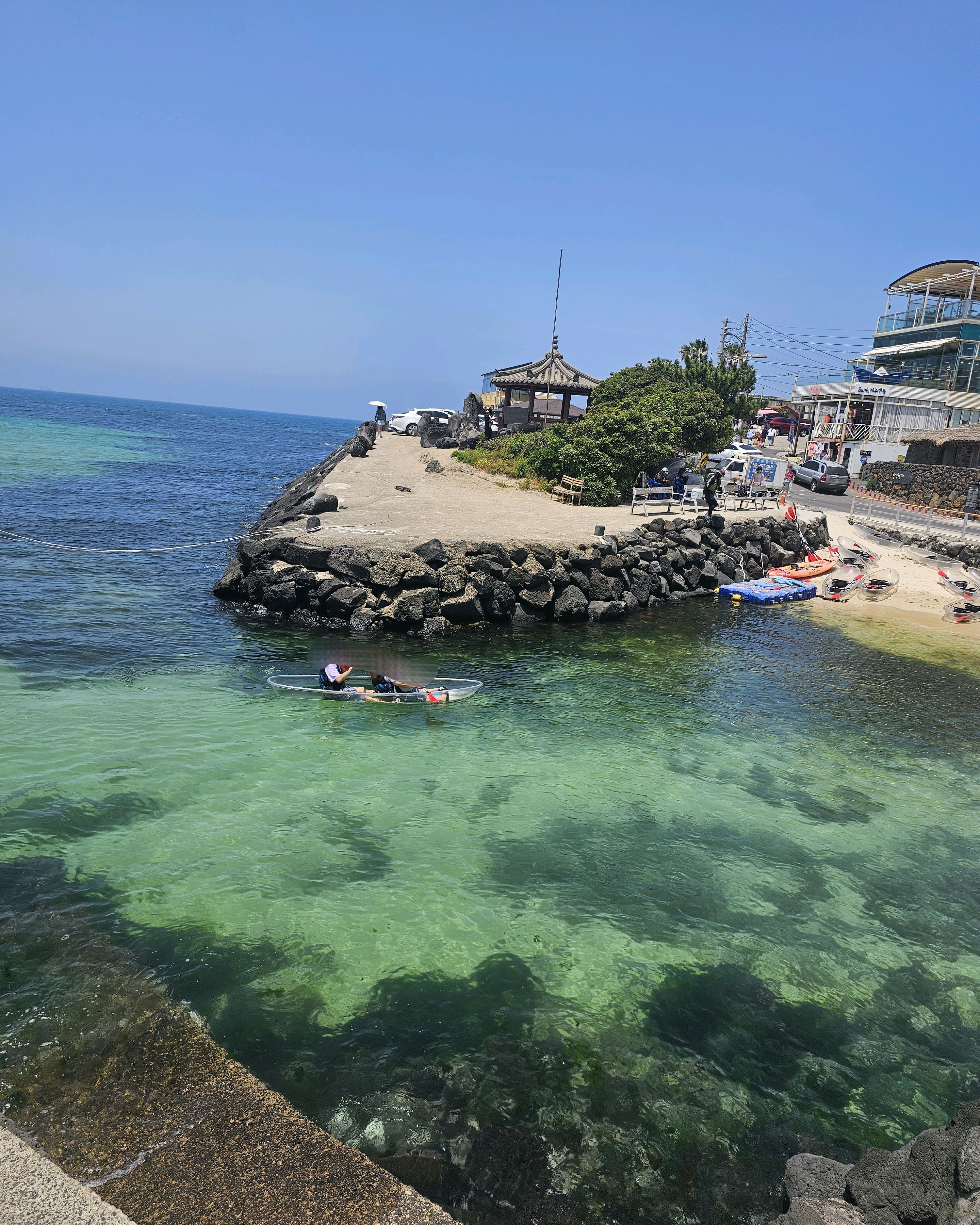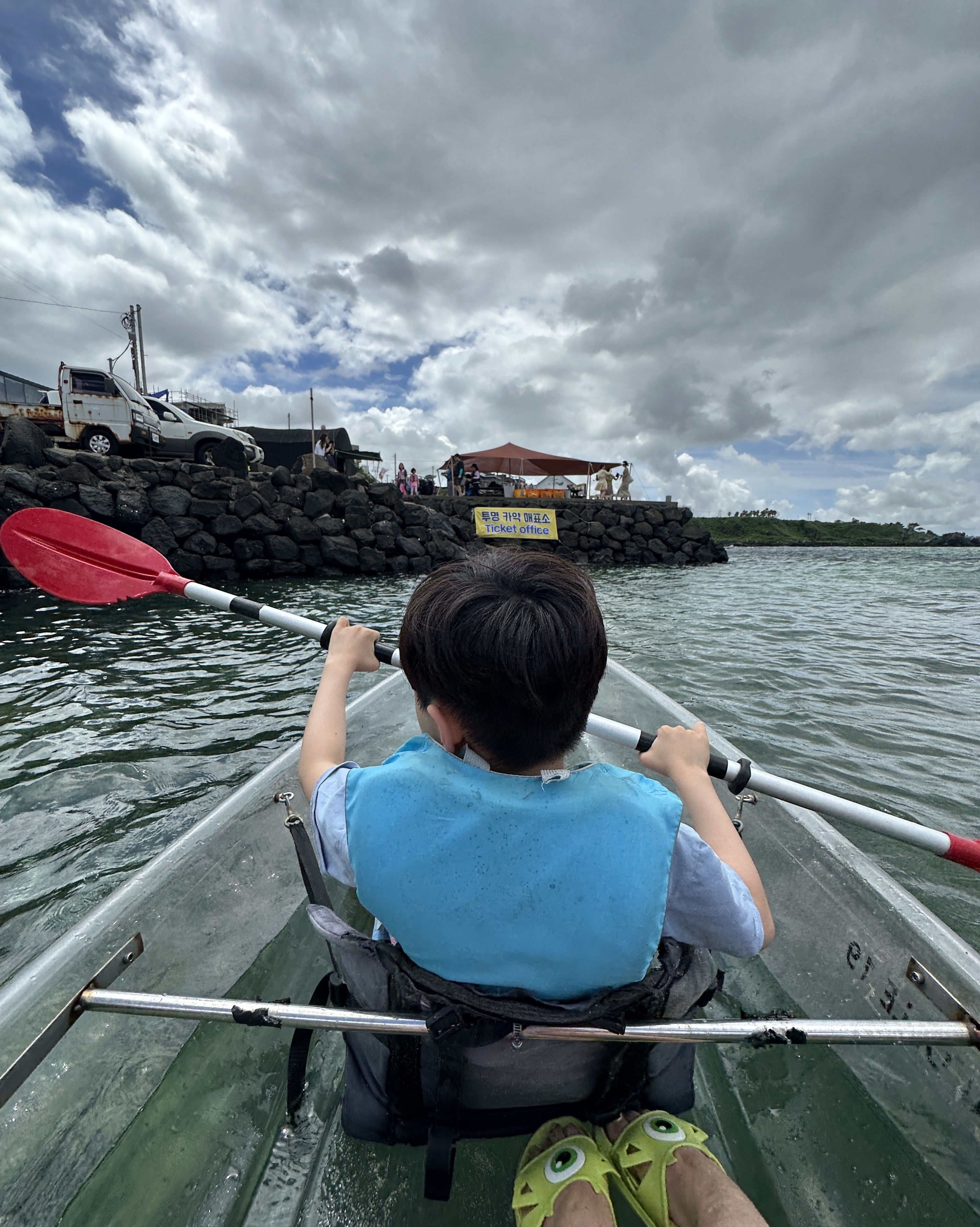 아이가 배를 타고 싶다고 해서 투명 카약을 탔는데 예쁜 바닷물 색깔이 바닥으로 보여서 좋았대요. 재미있다고 합니다. 30분이 금방 가요. 근데 옆에서 카약 안 타고 기다리는 엄마는 조금 지루해요. ^^