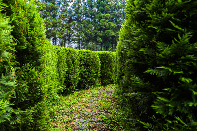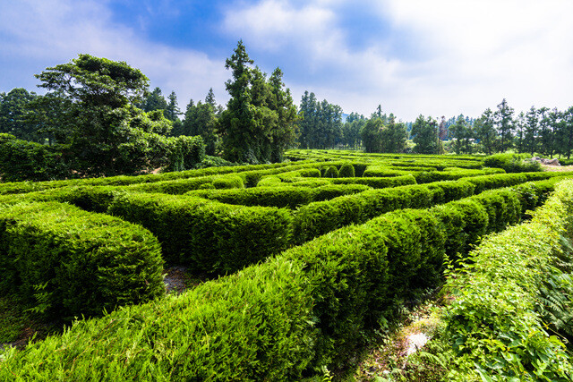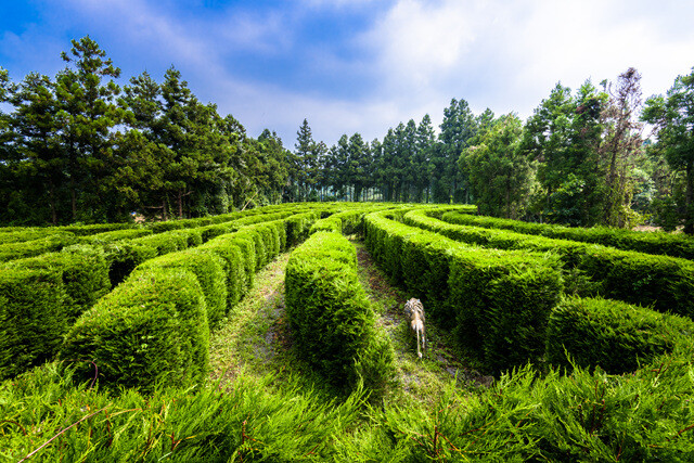 중문 미로파크는 사계절 푸르른 랠란디나무의 미로 속에서 길을 찾는 즐거움을 체험할 수 있는 공간으로 감귤 체험, 동물 친구들, 유채꽃밭과 제주의 신화와 역사, 황금사자의 이야기가 있는 곳이다. 이곳의 미로를 구성하는 나무는 랠란디 사이프러스(X cupressocyparis leylandii)로 흔히 랠란디라 칭한다. 푸르른 랠란디 나무의 싱그러운 향기는 심신 안정의 효과가 있다. 미로의 끝에는 황금사자 형상이 있다. 미로파크가 있는 예래동(猊來)은 ’사자가 온다’는 뜻으로 마을 이름의 유래가 전해진다. 서귀포 앞바다의 호랑이를 닮은 범섬이 예래동을 바라보고 있다. 예로부터 예래동은 범섬인 호랑이의 저주를 받아 나쁜 일이 그치지 않았다. 우연히 한 고승이 지나가다가 해 뜨는 동녘 바다에 우뚝 솟은 섬이 범 형상이어서 마을에 재앙을 가져오기 때문에 이 마을 뒤편 서북쪽에 있는 군산이 사자형이므로 호랑이와 대항할 사자가 온다는 뜻으로 예래라 지어주었으며, 그 뒤로 마을은 평온을 되찾았다고 한다.