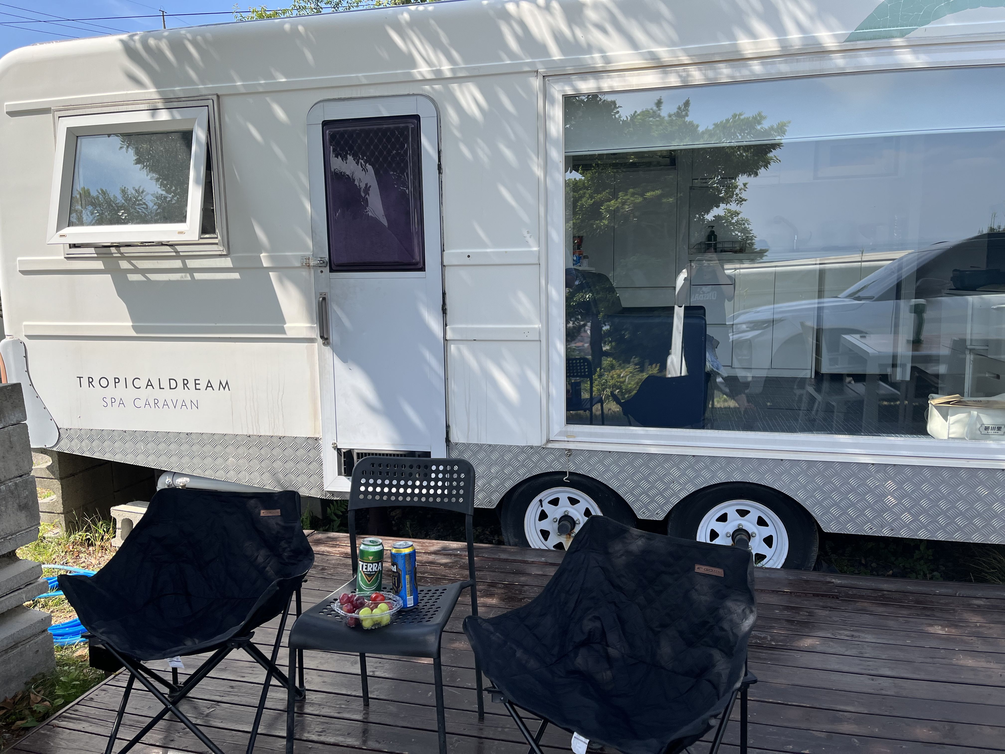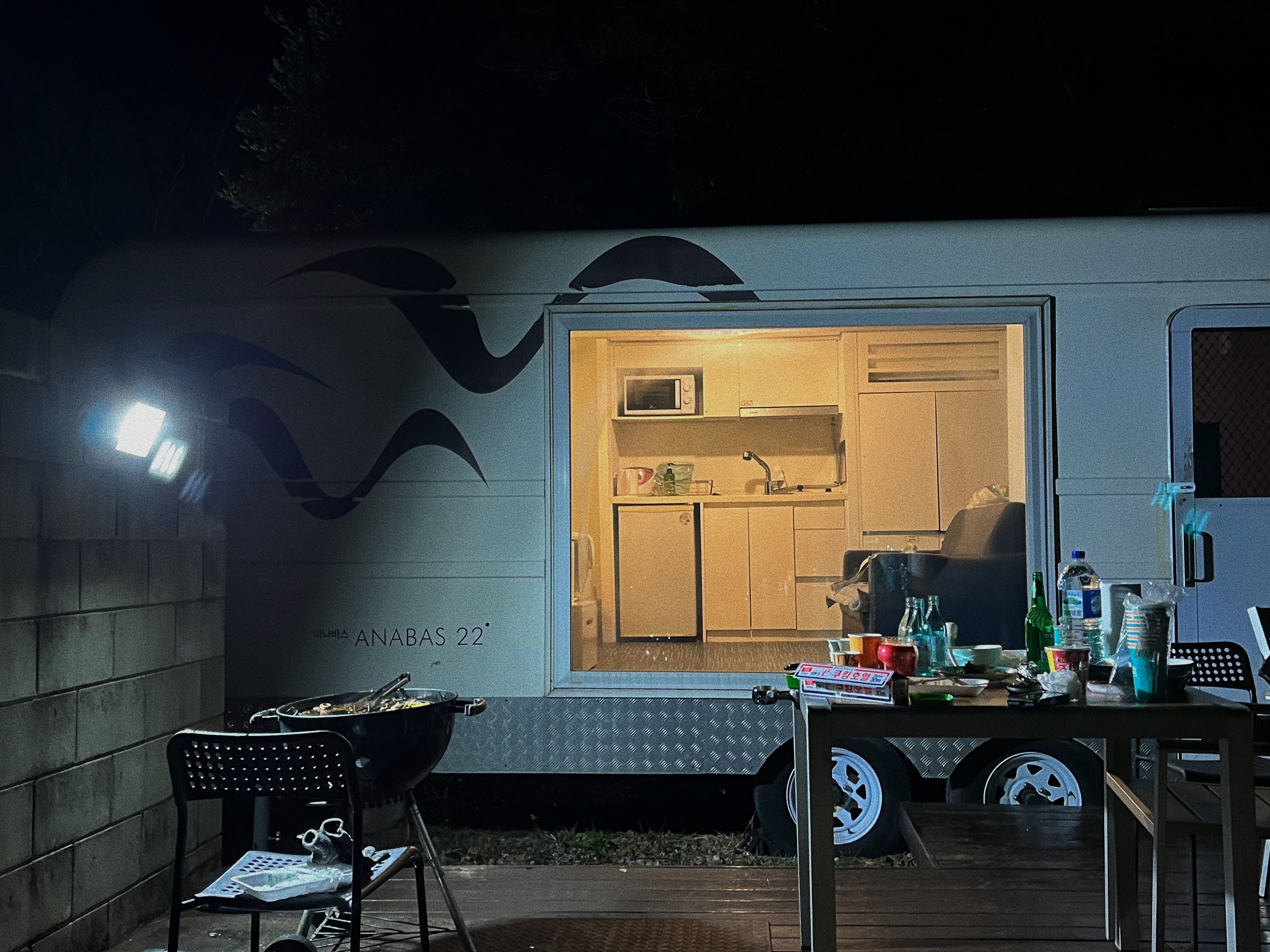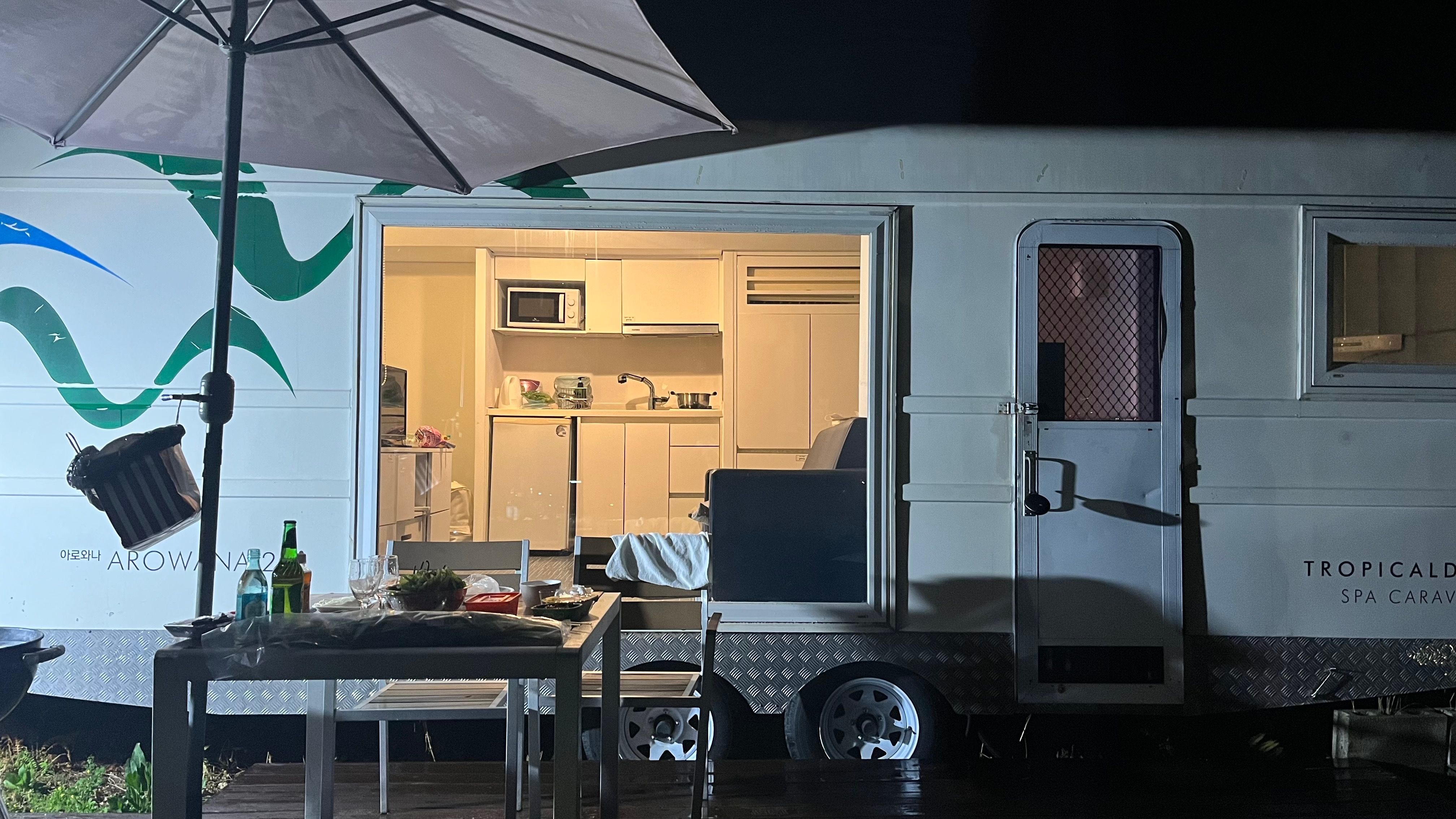 바람이 너무 많이 불고 비도 왔다가 안 왔다가 반복하길래 고기를 밖에서 굽고 카라반 안에 들어가서 먹었어요 온수도 잘 나오고 입욕제 서비스로 주셔서 스파도 따뜻하게 했어요ㅎㅎ 오래된 것 같았는데 관리를 잘 하신 것 같아요 사장님도 친절하시구 잘 놀다가 가요! ㅎ
