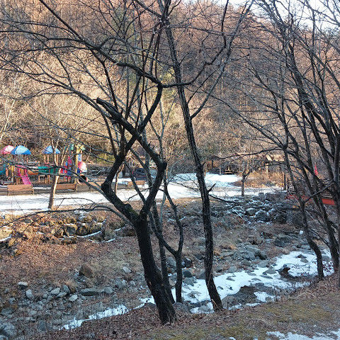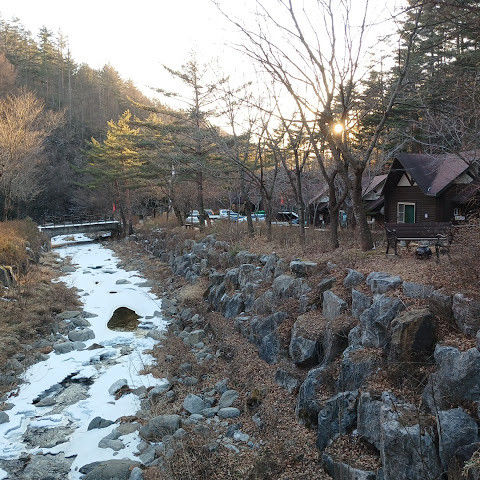 바람도 잘 안 불어서 영하 17도였는데도 잘 놀았네요~^^ 등산로도 잘 되어있고 밑에 1급수 계곡도 있어서 아이들과 여름에 놀기도 좋을 것 같아요ㅎㅎ 제가 묵은 숙소는 복층으로 되어있었는데 2층은 보일러가 안돼서 추웠어요 하지만 1층 보일러는 너무 잘돼서 익을뻔했네요 화장실은 목욕하기엔 좁았고요 온수는 잘 나왔어요 그리고 인덕션은 불이 약해졌다 강해졌다해서 신경쓰였지만 그것빼곤 너무 좋았어요 산책하면서 물소리랑 새소리가 같이들려서 힐링됐고 조용히 쉬고가기에 좋아서 다음에도 올 예정입니다^^ 잘 놀다가요
