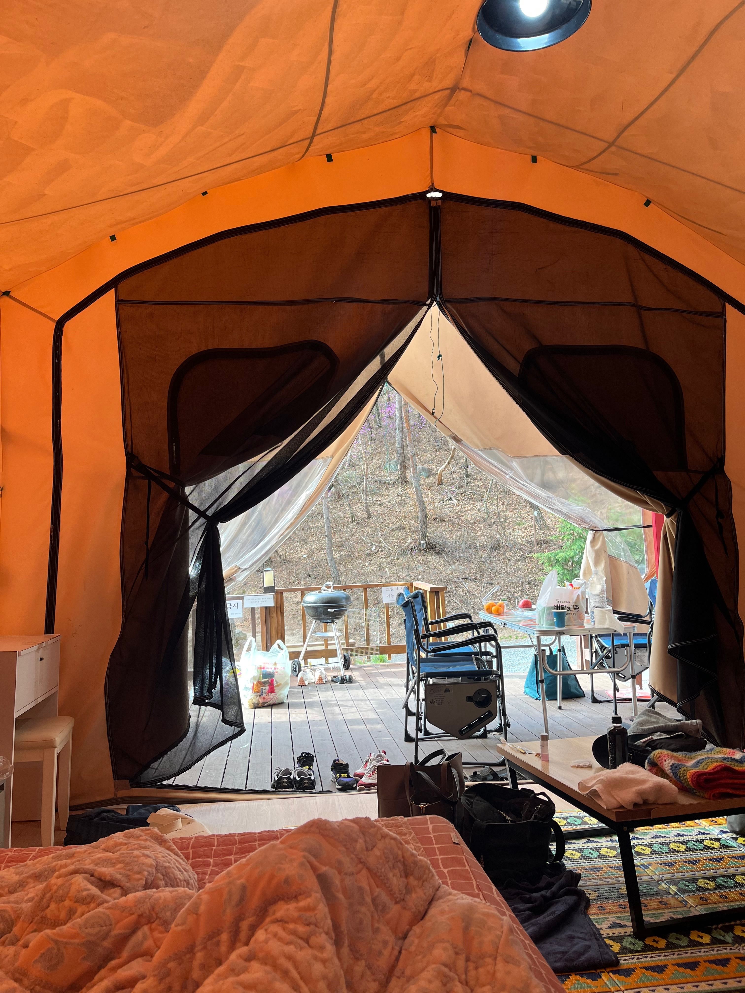 후기에는 옆 텐트소리가 티비튼것처럼 잘 들린다고 했는데 서로 조심해줘서 다행히 조용하게 잘 즐기다왔어요.