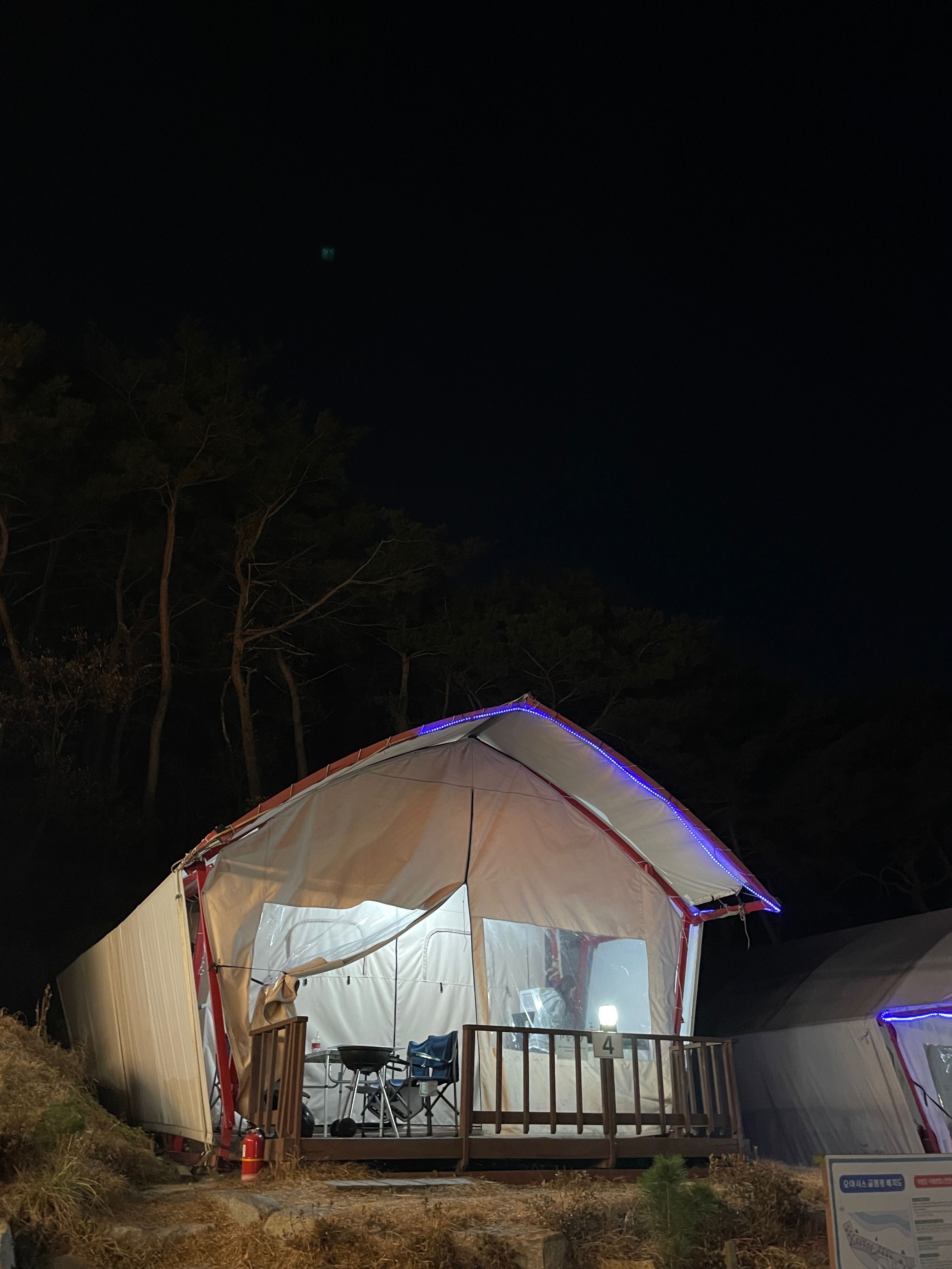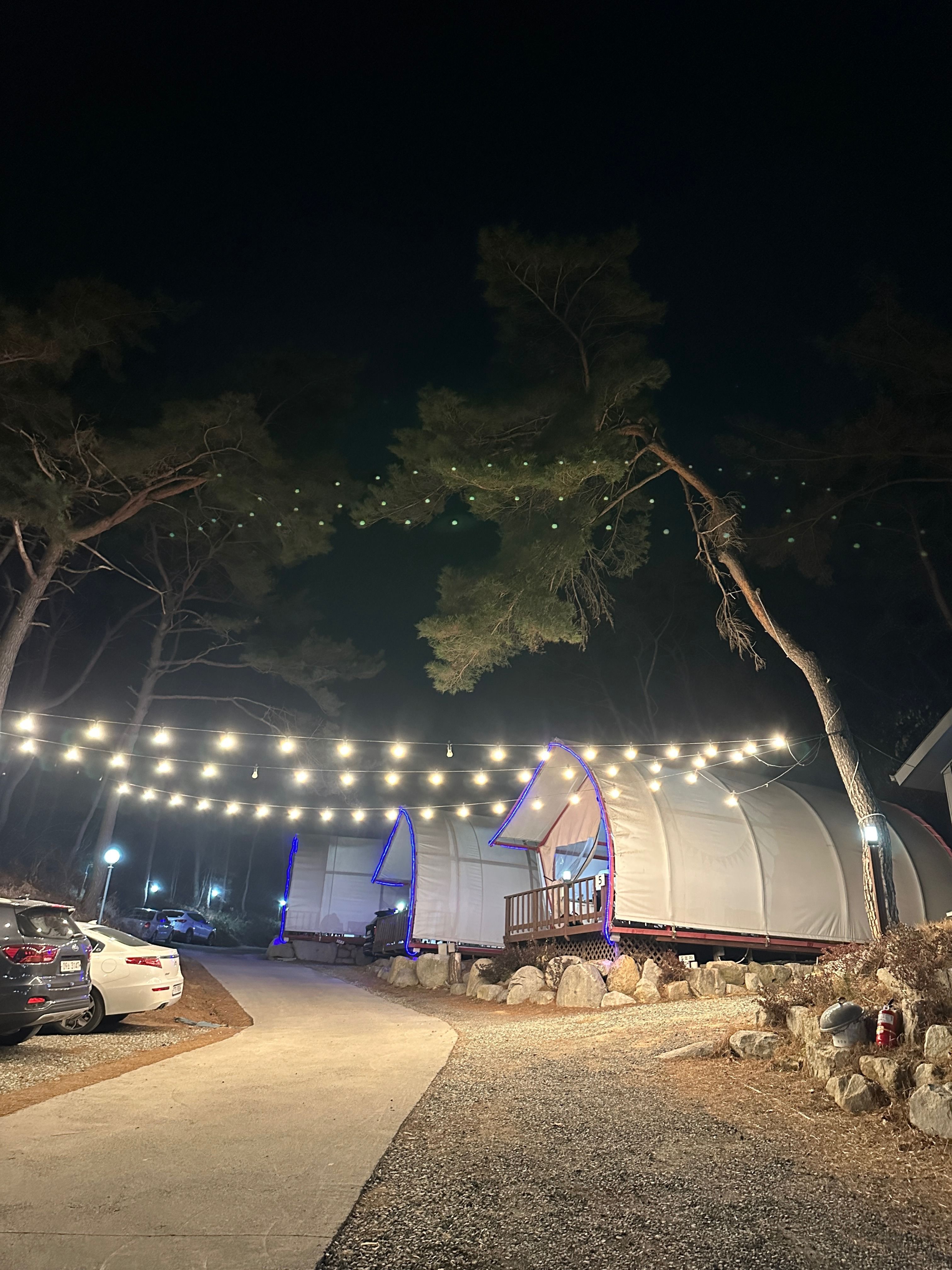 일단 너무 추운날에간 탓에 개인개수대가 얼어 전체 공용 개수대를 이용했습니다 물 사용하는데 불편함이 있었는데 날씨탓에 감안해야 했습니다. 일단 단점이 너무 많아서 적어봐요.. 여기 글램핑은 바닥난방이 없어요+지퍼가 고장났는데 고칠방법이 앖어서 사용하는동안 너무 힘들게 여닫았어요+밤12시까지는 시끄러운 고객 단속을 해주시는거같은데 그 이후 신고건은 답이 없으시네요.. 옆 글램핑에서 4시까지 소리지르고 싸우는데도 단속같은건 없었어요. 진짜 이건 그날 운인거같네요+불멍할수있는 장작구매및서비스는없습니다+날씨탓에 온수쓰는데 제한이 좀 있었어요+바닥이 더러워서 물티슈로 닦고 이용했어요 등등 단점이 좀 많았는데.. 적당히 있는데로 이용하다가 갔습니다.