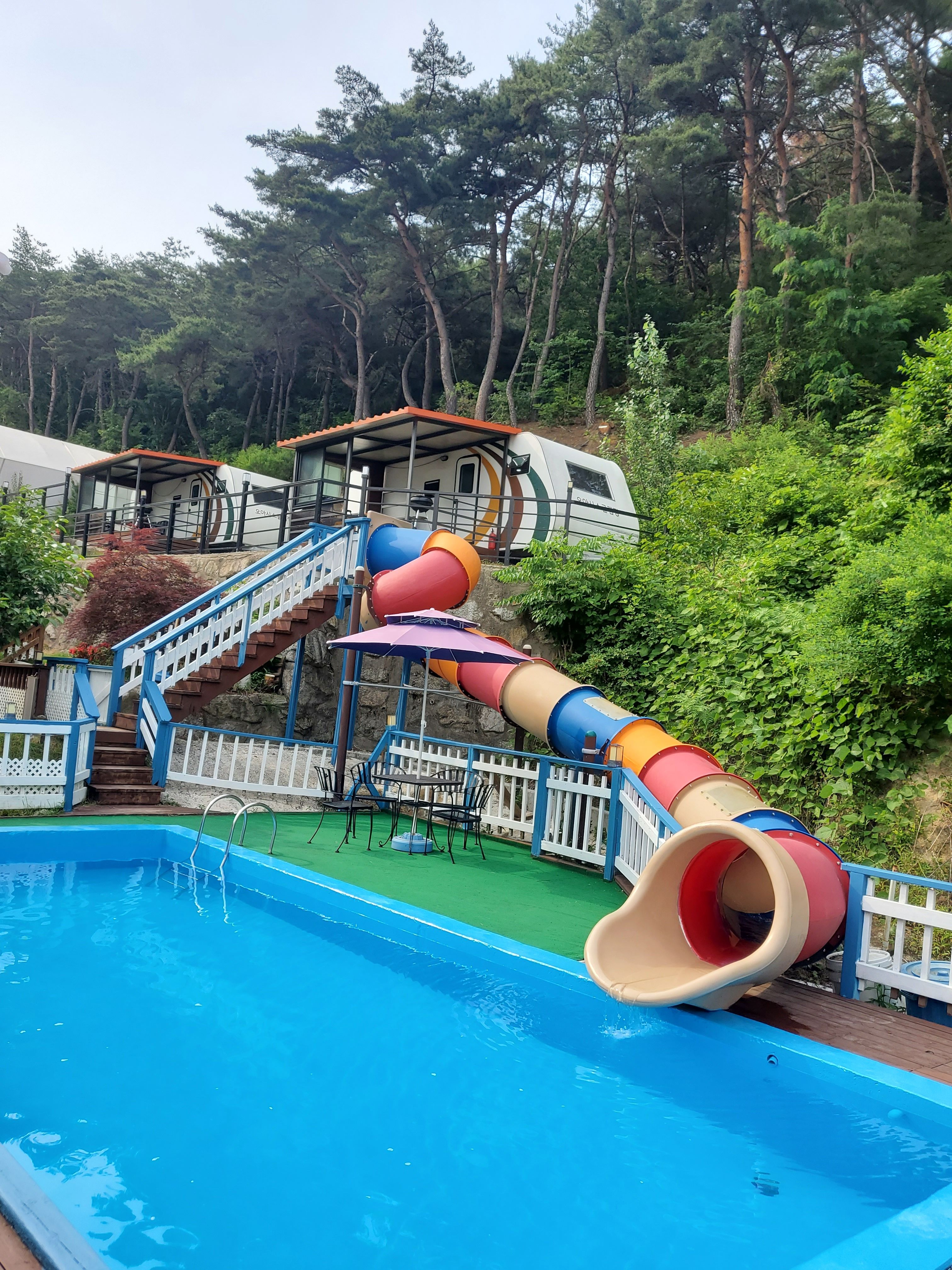 아이들과 물놀이하기가 좋고, 미끄럼틀이 있어 엄청신났어요.