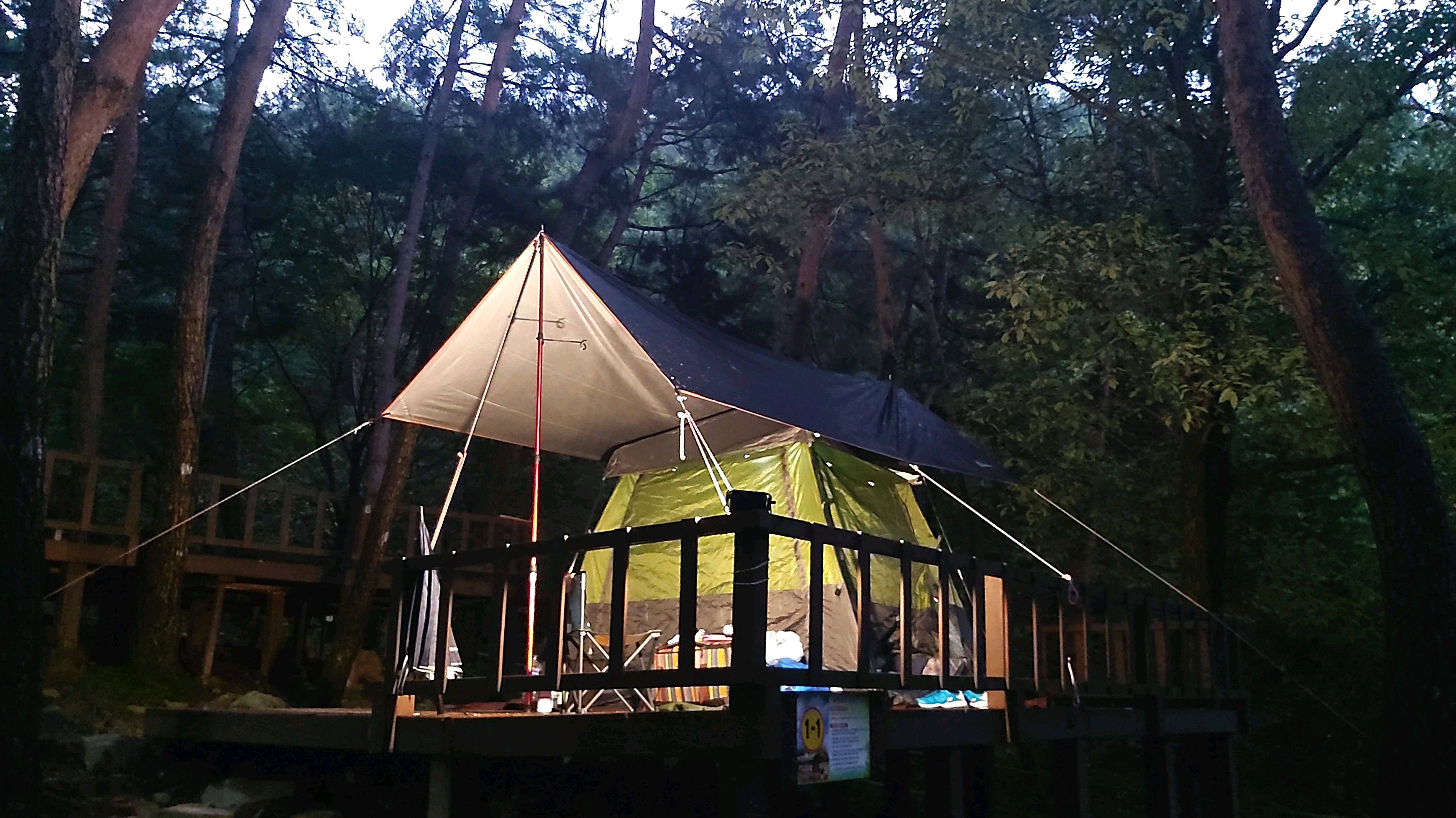 데크도 깨끗하고 위에는 나무그늘 대신 타프가 있었는데 좋았다. 화장실 샤워실 세척실이 주변에 있어 편리했다.