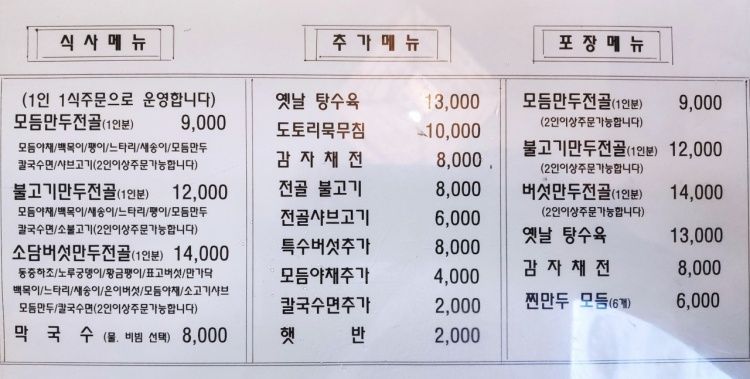 주변 경치가 아름다우며 예쁘게 잘 가꾸어 놓은 야생화 정원과 넓은 주차장을 겸비한 만두전골 맛집이다. 인원수에 맞게 다양한 테이블방을 갖추고 있어 조용한 분위기에서 특별한 모임을 원할 때 방문하면 좋다. 담백하고 깔끔한 만두전골 맛이 일품이다.