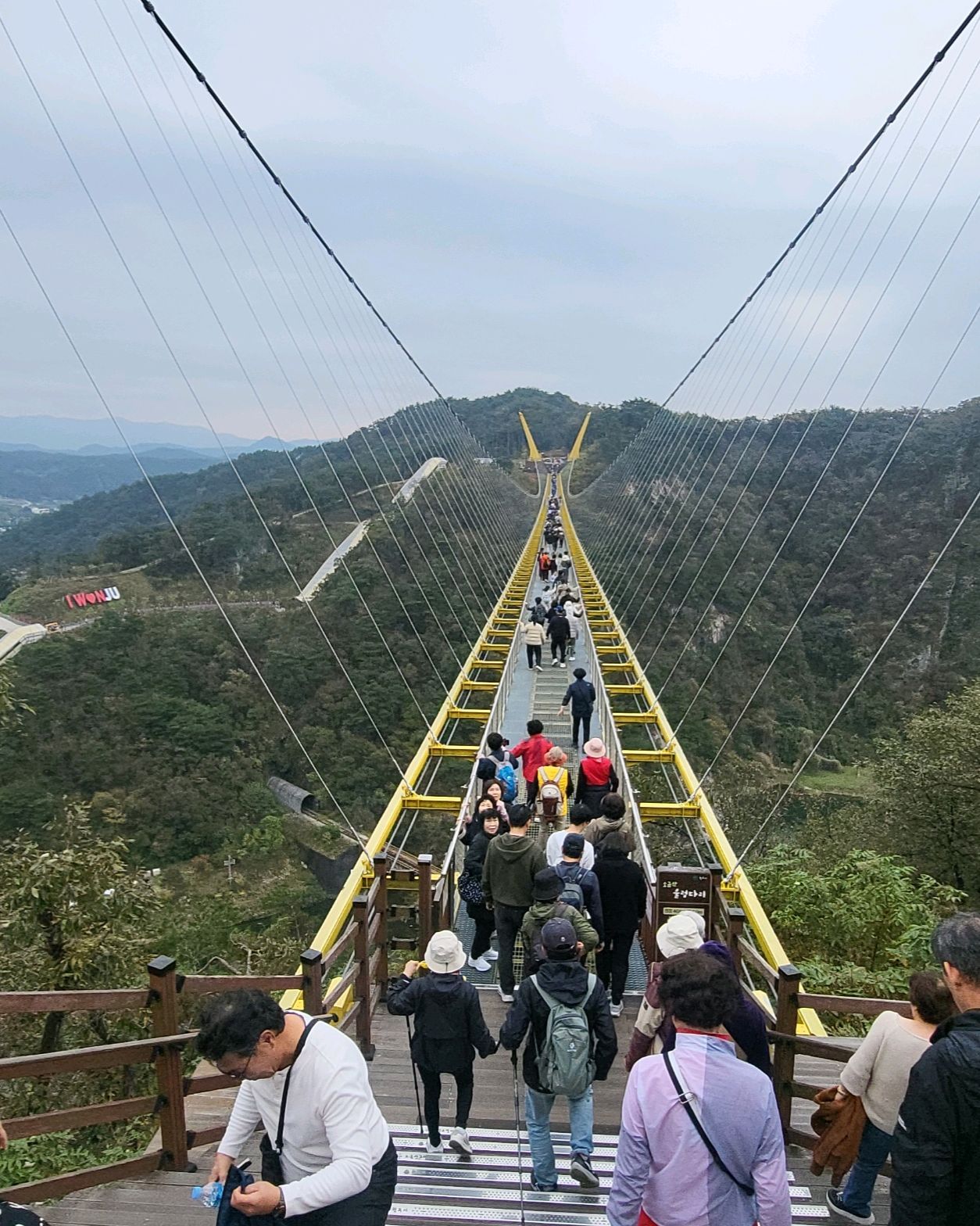 견학인지 학생들이 많았고 흔들다리도 덕분에 더 흔들거렸으나 일방통행으로 안전을 고려하는듯은 했음!! BUT, 어떤문구도 없이 안전요원을 양끝에만 두는 방법은 안될듯!!