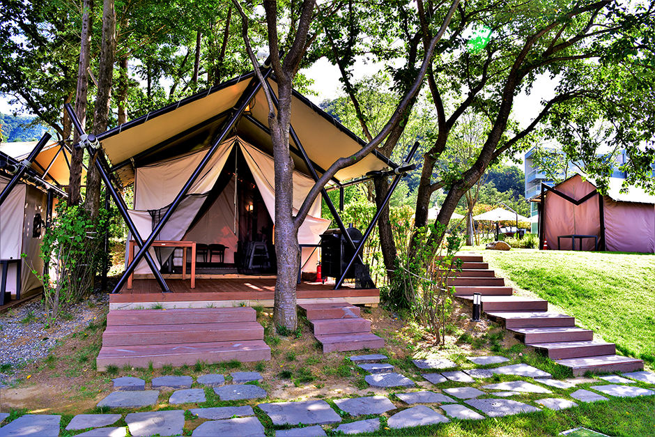 카바나 스타일의 글램핑 5동과 리조트로서 각종 부대시설이 준비되어 있다, 어린이를 위한 키즈 잼 놀이시설, 비움 하우스, 미니 동물원 이용이 가능하다. 사이트 뒤편으로는 넓은 원형 풀장이 있어서 연계 이용이 가능하다. 사이트 내에는 대형 프로젝션 빔과 양질의 스피커를 설치했다. 이용객들이 영화와 음악을 즐기면서 자연 속에서 힐링할 수 있도록 배려했다.