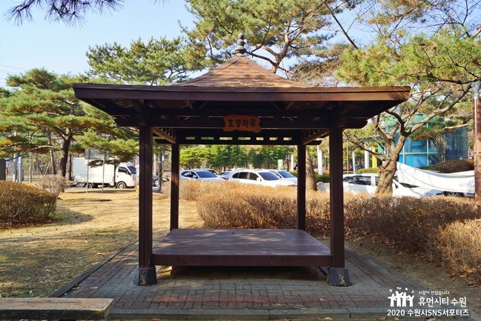 공원 안에는 프랑스군 참전비, 무궁화 터널, 어린이 생태미술체험관, 효행기념관, 정조대왕 동상이 있고 5km 구간에 걸쳐 노송지대가 잘 관리돼 있어 아름다운 숲길을 걷기 좋다. 광교산으로 연결되는 등산로가 있고 산책로와 쉼터가 있어 계절에 관계없이 시민들이 많이 찾는 곳이다. |