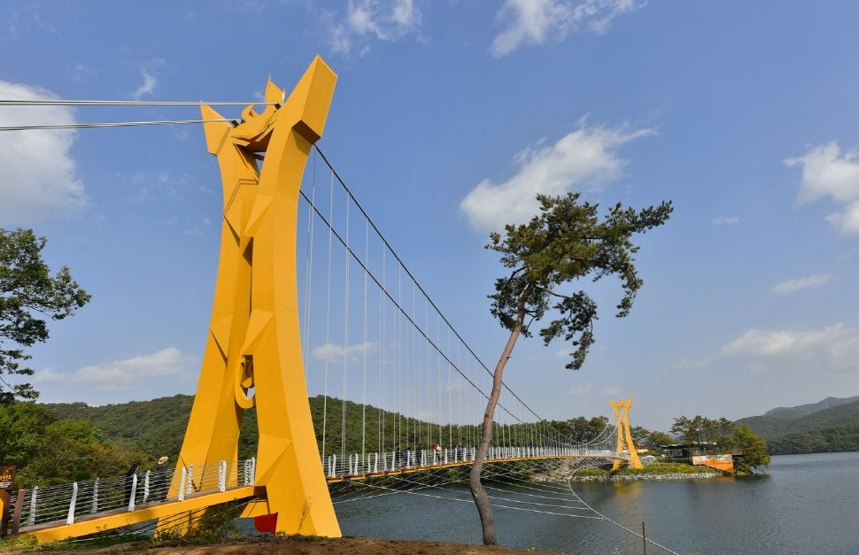 옐로우 출렁다리는 전라남도 장성의 장성호에 있는 출렁다리다. 길이 154m, 폭 1.5m이다. 맑은 하늘과 푸른 나무가 멋지게 펼쳐진 주변 풍경이 장성호 수면에 그림처럼 비치면 형용할 수 없는 아름다움이 느껴진다. 아찔한 출렁다리 위에서 보는 경관은 스릴감과 감탄을 자아내기 충분하다. 옐로우 출렁다리는 장성호 수변길과ㄷ 연결되어 있다. 트레킹을 하면서 장성호의 아름다운 경관을 즐기며, 아찔한 즐거움까지 만끽할 수 있다.