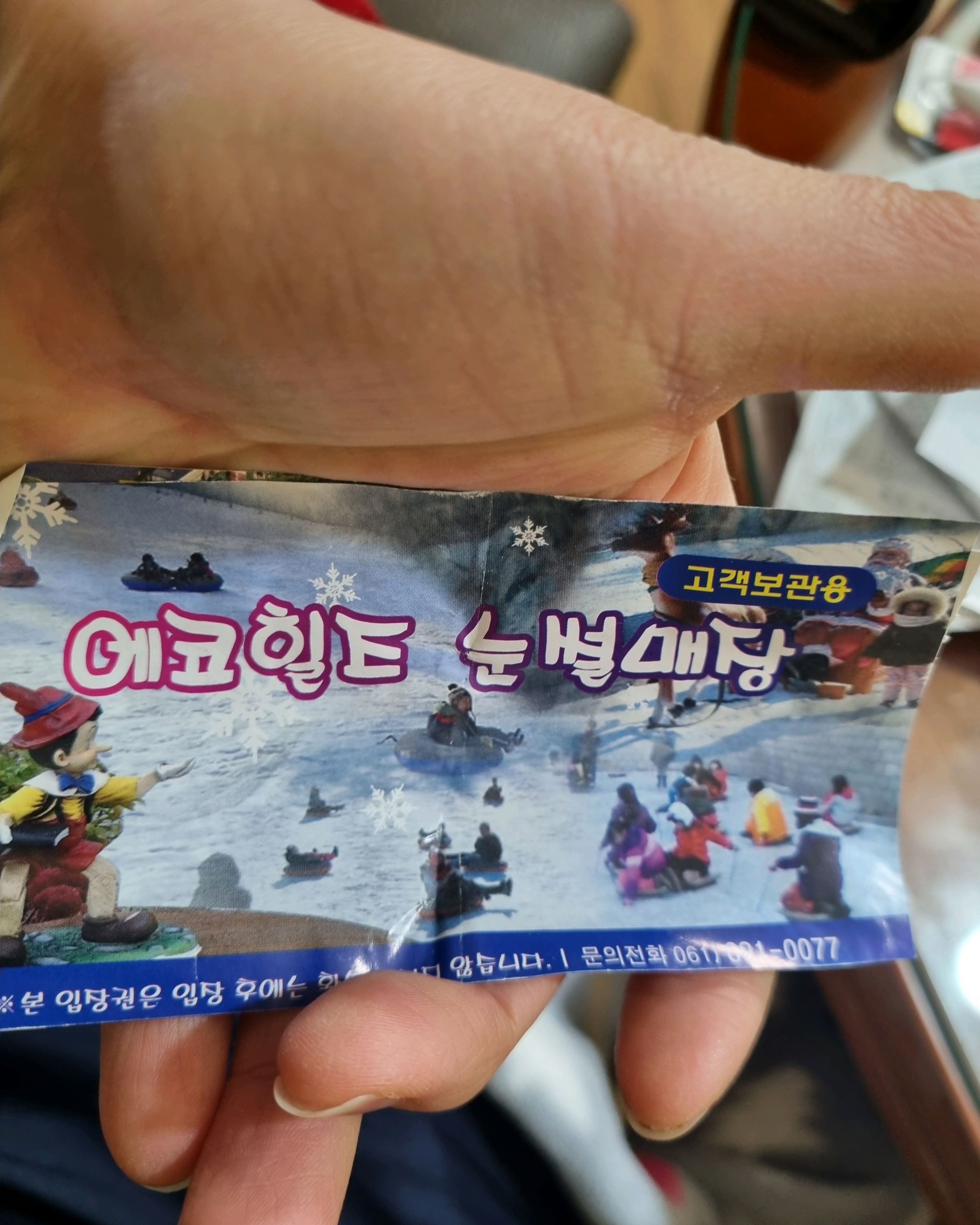 식당도 저렴하고 화장실도 깨끗하고 무엇보다 눈썰매가 유아도 따로있고 초등 성인 모두 타기에 너무 좋았다