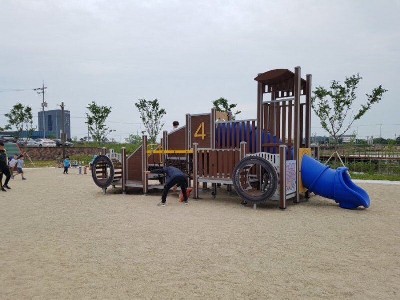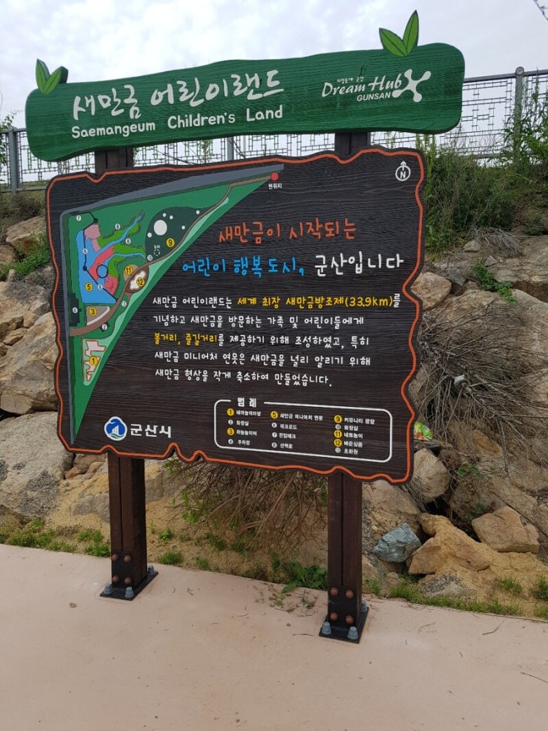 규모 56,000㎡의 새만금 어린이랜드는 새만금을 200분의 1로 축소해 만든 생태연못과 새만금 방조제를 형상화한 170m의 데크 로드로 조성되어 있다. 다양한 수생식물들이 수질을 정화하는 새만금 생태연못을 눈으로 직접 볼 수 있다. 비행기와 자동차 모양의 놀이대가 있는 놀이터, 마음껏 뛰어다닐 수 있는 잔디 광장, 전 세계 어린이들이 그린 타일 그림이 전시된 상자형 쉼터, 전북 최초로 설치된 바운싱 돔, RC카 조종 체험 등 어린이들이 마음껏 즐기고 뛰어놀면서 호기심을 충족시킬 수 있는 놀이공간이다.