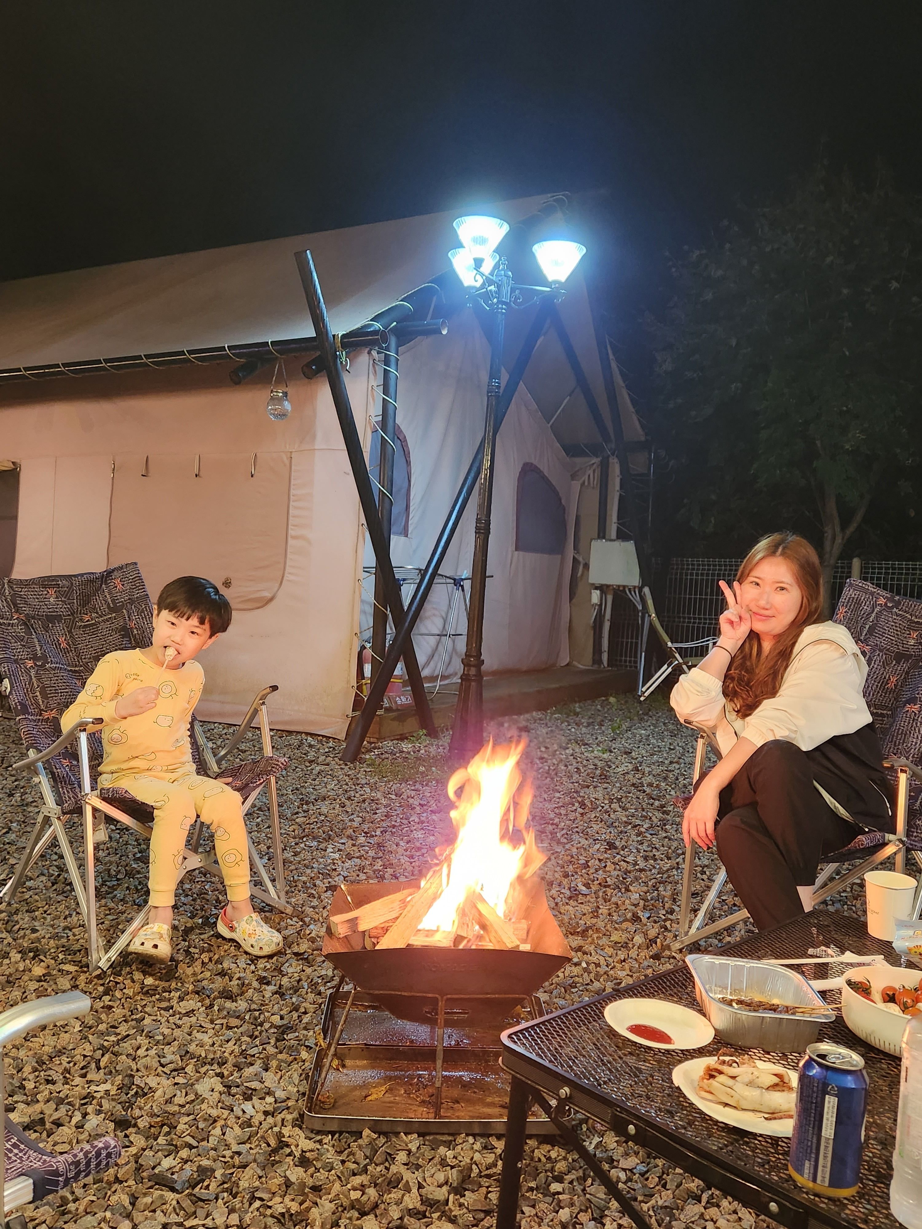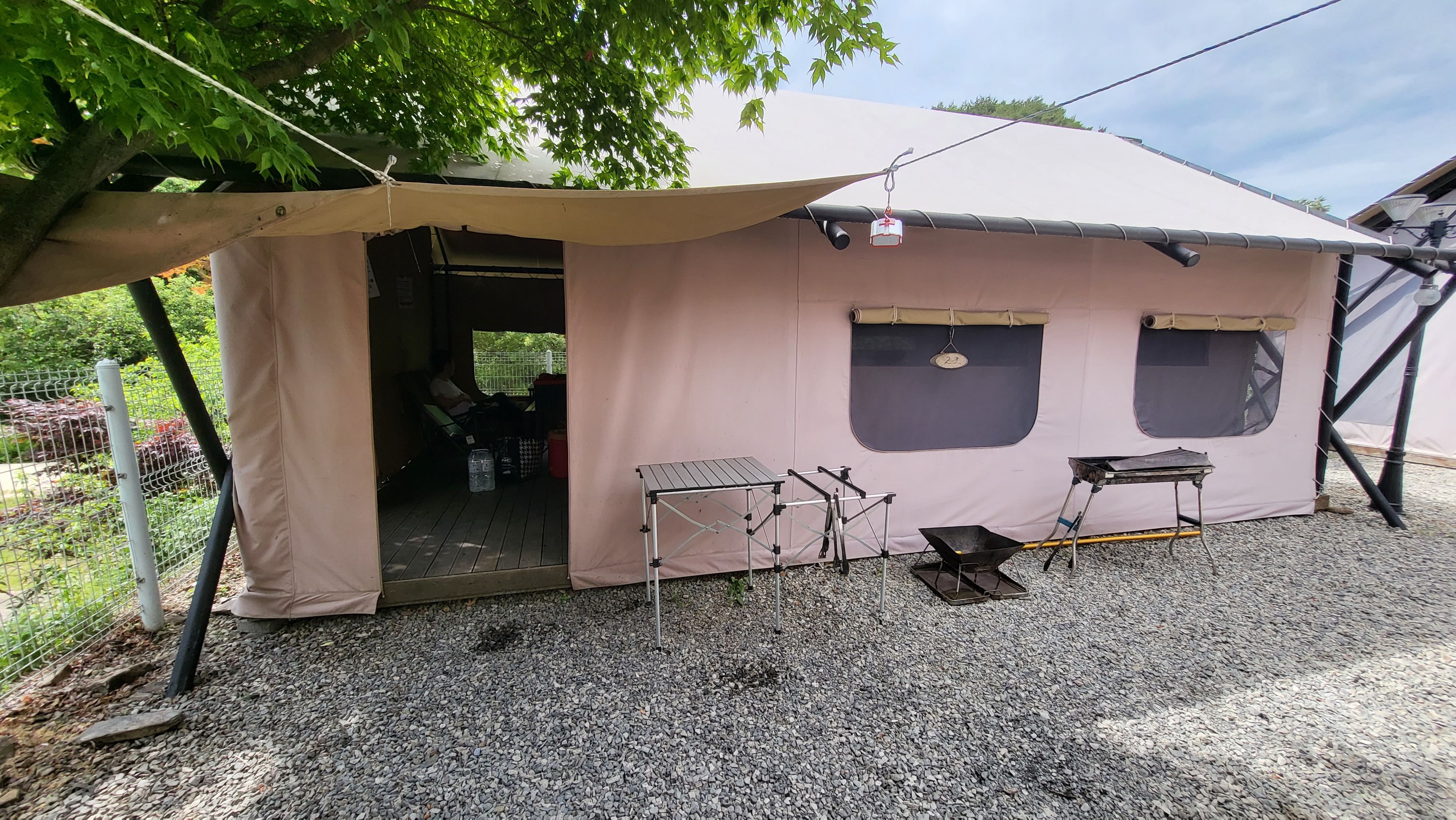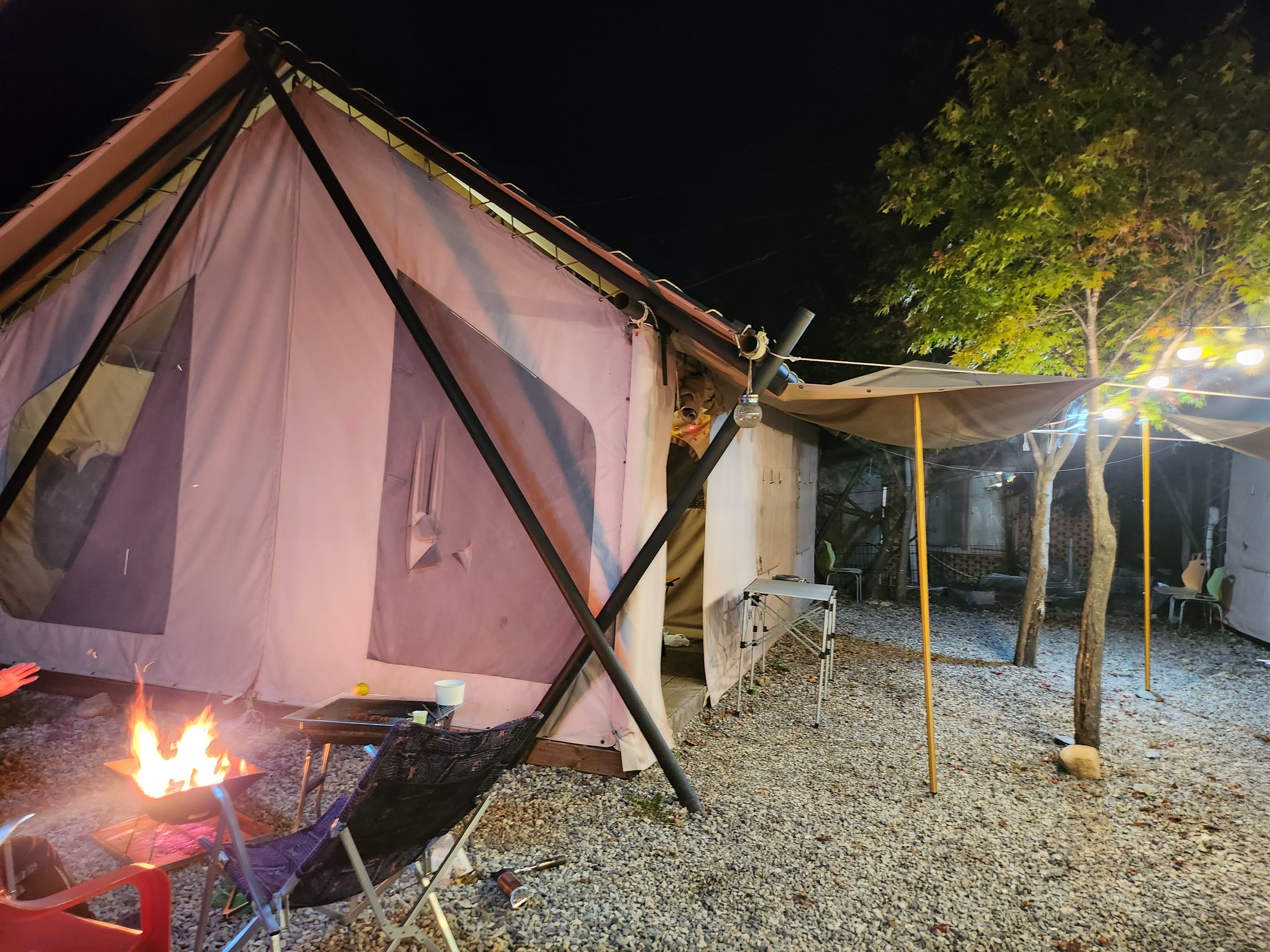사람이 안찍힌 예쁜 사진이 없어서 아쉬워요. 그냥 모습만 텐트지 펜션같아요. 편하고, 바닥 난방매트도있고, 짱이에요!