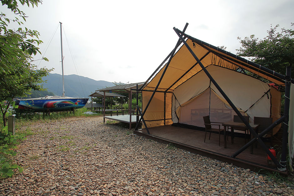 아라야영장은 경북 성주군 금수면에 자리 잡고 있다. 성주군청을 기점으로 16㎞가량 떨어졌으며, 자동차를 타고 참별로, 가야로, 가천로를 차례로 거치면 닿는다. 도착까지 소요되는 시간은 30분 안팎이다. 이곳은 대규모 수상 레저 시설이 압권이다. 한여름 무더위를 단숨에 날려주는 워터파크를 비롯해 모터보트, 바나나 보트, 플라이 와일드, 땅콩 보트, 바이퍼 등 일일이 열거하기도 힘들 정도로 많은 물놀이 기구가 캠퍼를 반긴다. 캠핑장에는 임대 텐트를 마련했다. 텐트 1동을 대여하거나 사이트(자리)만도 대여가 가능하다. 2023년 9월 현재 글램핑 시설은 준비 중이다. 캠핑장 자체가 아라월드에 있는 덕분에 다른 관광지를 찾아 멀리까지 갈 필요가 없다. 인근에 여러 가지 음식점도 성업 중이다.