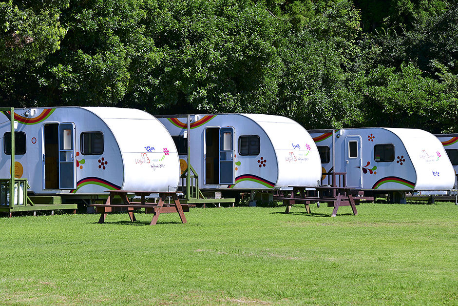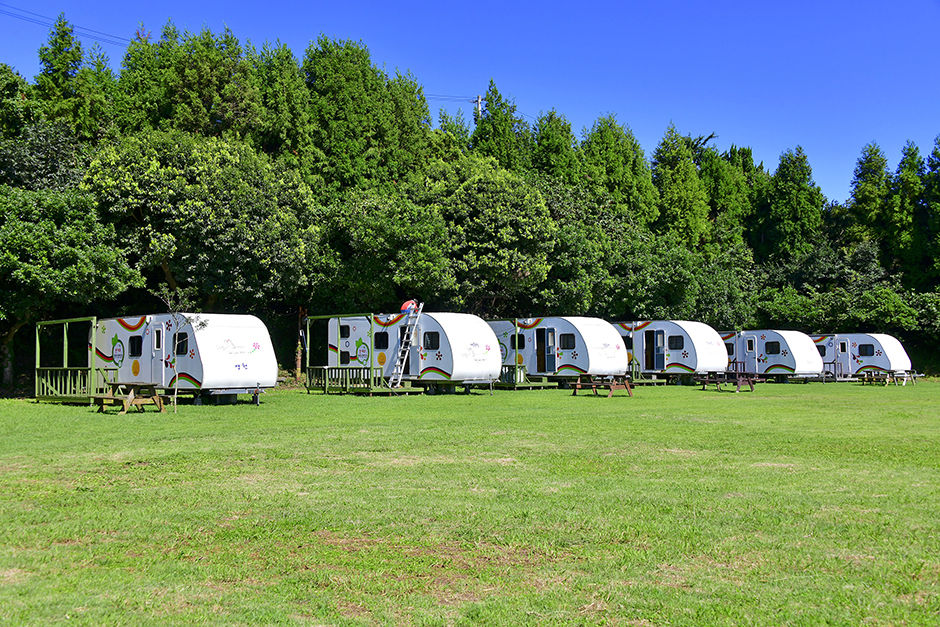 원앙캠핑장은 현지에서도 유명한 피서지로서 한라산 돈내코 계곡 원앙폭포 바로 옆에 있는 공기 좋고 조용한 캠핑장이다. 4인용 카라반과 6인용 카라반이 있으며, 카라반 옆으로는 테라스가 있어 바비큐도 할 수 있다. 카라반 내부에는 침대와 식탁, 냉장고, TV, 전자레인지, 취사도구 일체와 샤워장, 화장실, 냉난방 시설이 완비되어 있다. 와이파이 사용도 가능하다. 넓은 잔디운동장에는 축구 골대와 여러 가지 놀이 시설들이 있어 (암벽등반, 외나무다리, 구름다리 등) 어린이들이 마음껏 뛰어놀기 좋다. 산책길을 따라 원앙폭포에 가보자. 높이가 5m밖에 되지 않지만 마치 청록색 물감을 풀어놓은 듯한 계곡물과 바위들이 옹기종기 모여 앉아 있는 모습이 앙증맞다.