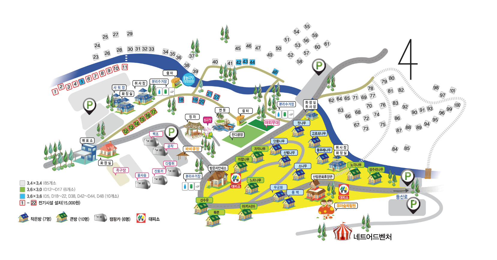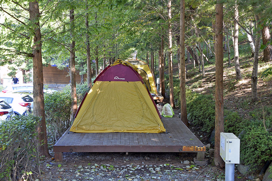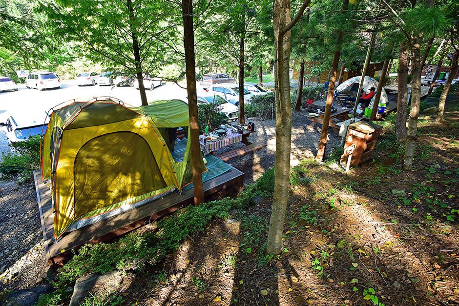 산책로, 등산로가 있어 저녁 먹기 전 운동하가 좋다. 숲속에 야영할 수 있는 데크가 많은 것도 장점이다.