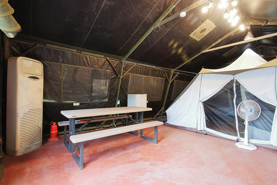 Camp 1950 by 민들레울은 경북 김천시 대덕면에 있다. 김천시청을 기점으로 약 38㎞ 떨어졌으며, 자동차로 50분 안팎이면 도착한다. 캠핑장에 들어서면 밀리터리 콘셉트로 꾸민 공간이 시선을 끈다. 군용 트럭을 비롯해 앰뷸런스, 텐트 등 시선을 옮기는 곳마다 이색적인 풍경이 펼쳐진다. 캠핑장에는 글램핑 11개 동, 일반 야영장 9면, 헬기와 잠수함 모양의 숙박시설 등이 있다. 글램핑 객실 내부에는 야전 침대, 대형 에어컨, 테이블, 침구류 등이 있다. 일반 야영장은 가로 3m 세로 6m 크기이며, 철제 데크 위에 군용 그늘막을 설치했다. 관리소에서는 텐트, 릴선, 화로 대, 난방기구, 식기, 침낭을 대여해준다. 캠핑장 인근에 봉곡사, 대덕산, 수도산 등이 있어 연계 관광하기 편하다. 캠핑장에서 증산면 방면으로 나가면 음식점도 많은 편이다.