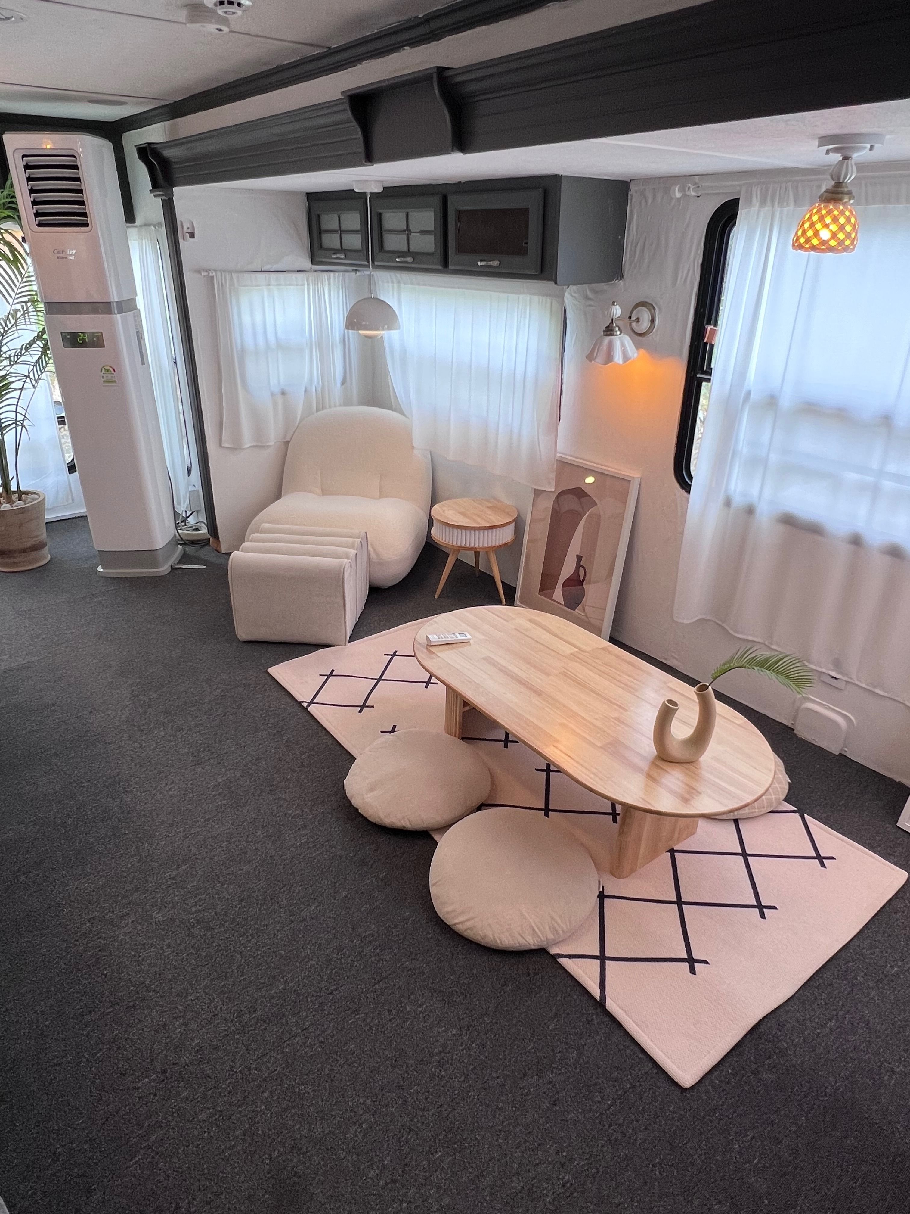 인테리어가 맘에 들어 고민끝에 201호로 예약해서 왔는데 넘 좋았어요^^일반적으로 카라반은 좁다고만 생각했는데 여긴 미국식 카라반이라 공간이 넓더라구요~^^