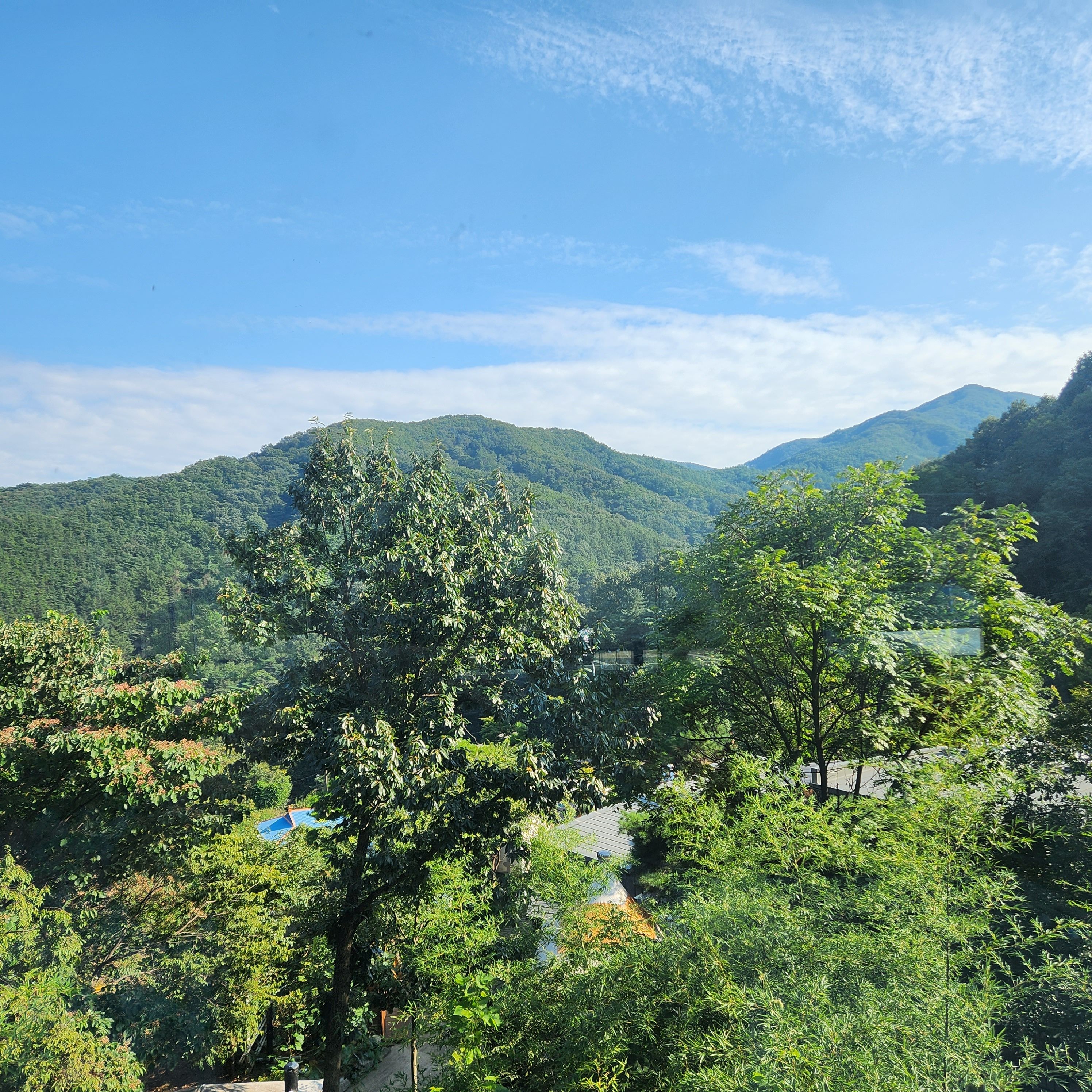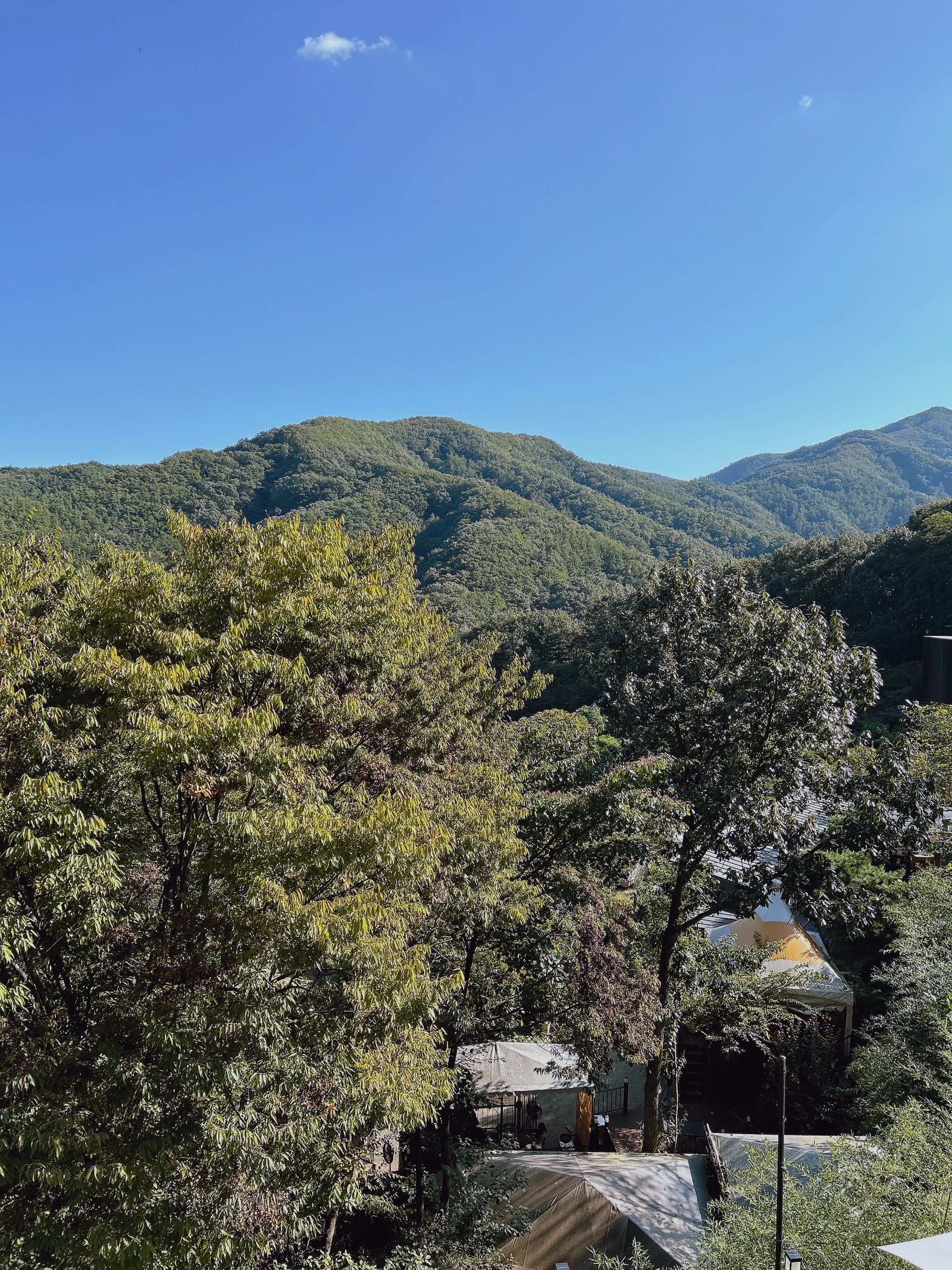 카페에서 보이는 뷰가 정말 예뻐서 오길 잘한 것 같아요 행복한 시간 보내고 갑니다🐿️⛰️