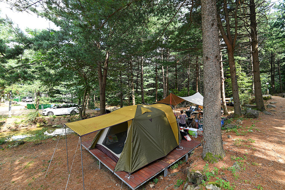 지리산 숲속의 쉼터는 캠핑과 펜션을 함께 즐길 수 있는 곳이다. 펜션은 독채, 온돌방, 가족실, 2인실로 나뉘고 캠핑은 나무 데크위에 텐트를 칠 수 있도록 준비돼 있다. 지리산을 4계절 내내 감상할 수 있고 캠핑장 앞으로 거림계곡이 흘러 물놀이를 하며 물고기도 잡을 수 있다. 시원한 계곡을 즐기기 위해 당일치기로 놀러 오는 손님들을 위해 평상 대여도 한다. 개별 바비큐 그릴이 있어 독립된 공간에서의 식사가 가능하고 배전함과 소화전도 갖췄다. 해발 700m가 넘는 곳에 위치해 있어 한여름에도 서늘한 공기를 느낄 수 있으며 산책로도 잘 꾸며 놓았다. 족구장에서 배드민턴이나 캐치볼을 하면서 아이들과 캠핑을 즐길 수 있다. 예약문의는 전화로만 받는다.( 010-9926-2017)