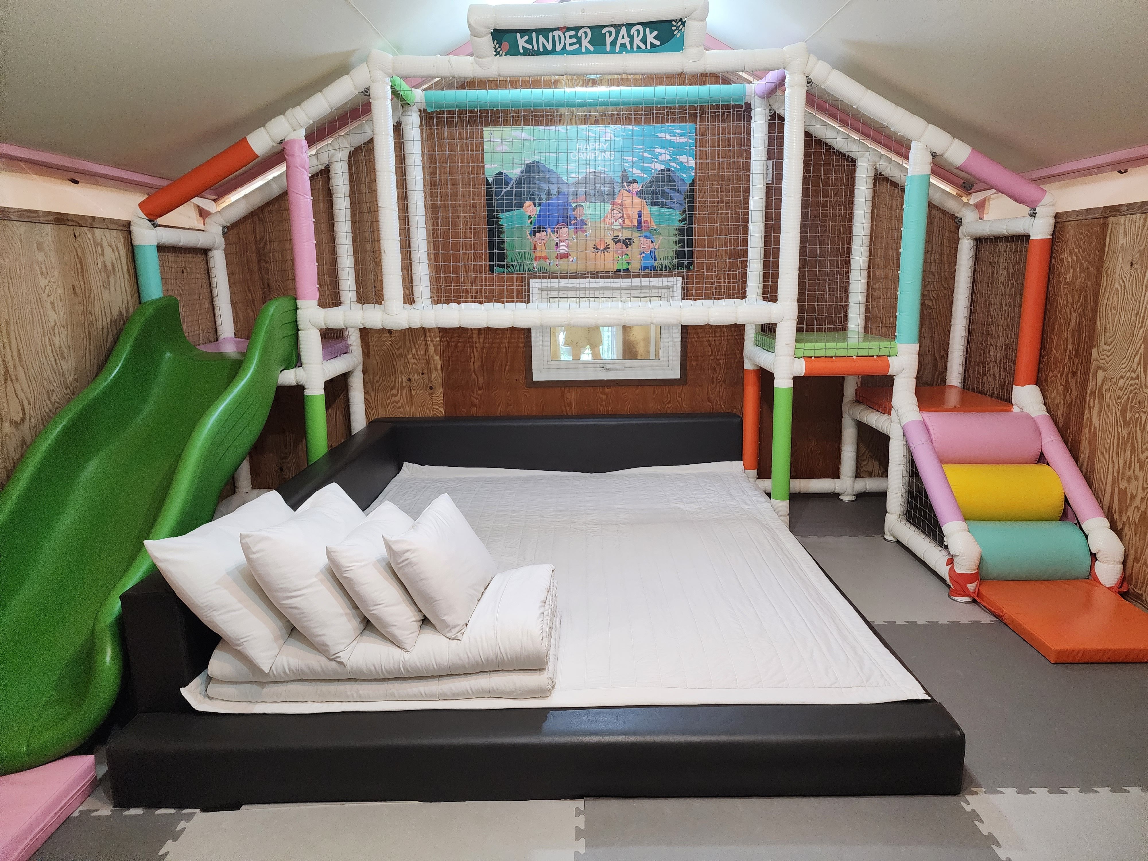 방도 따뜻하게 난방 잘 되고 화장실도 바닥이 따뜻하고 뜨거운 물 잘 나와서 너무 좋았어요. 미끄럼틀 화장실 침대 티비 등 방안에 있는 내용들이 아이들이 와서 놀거를 많이 고려하신거 같아요