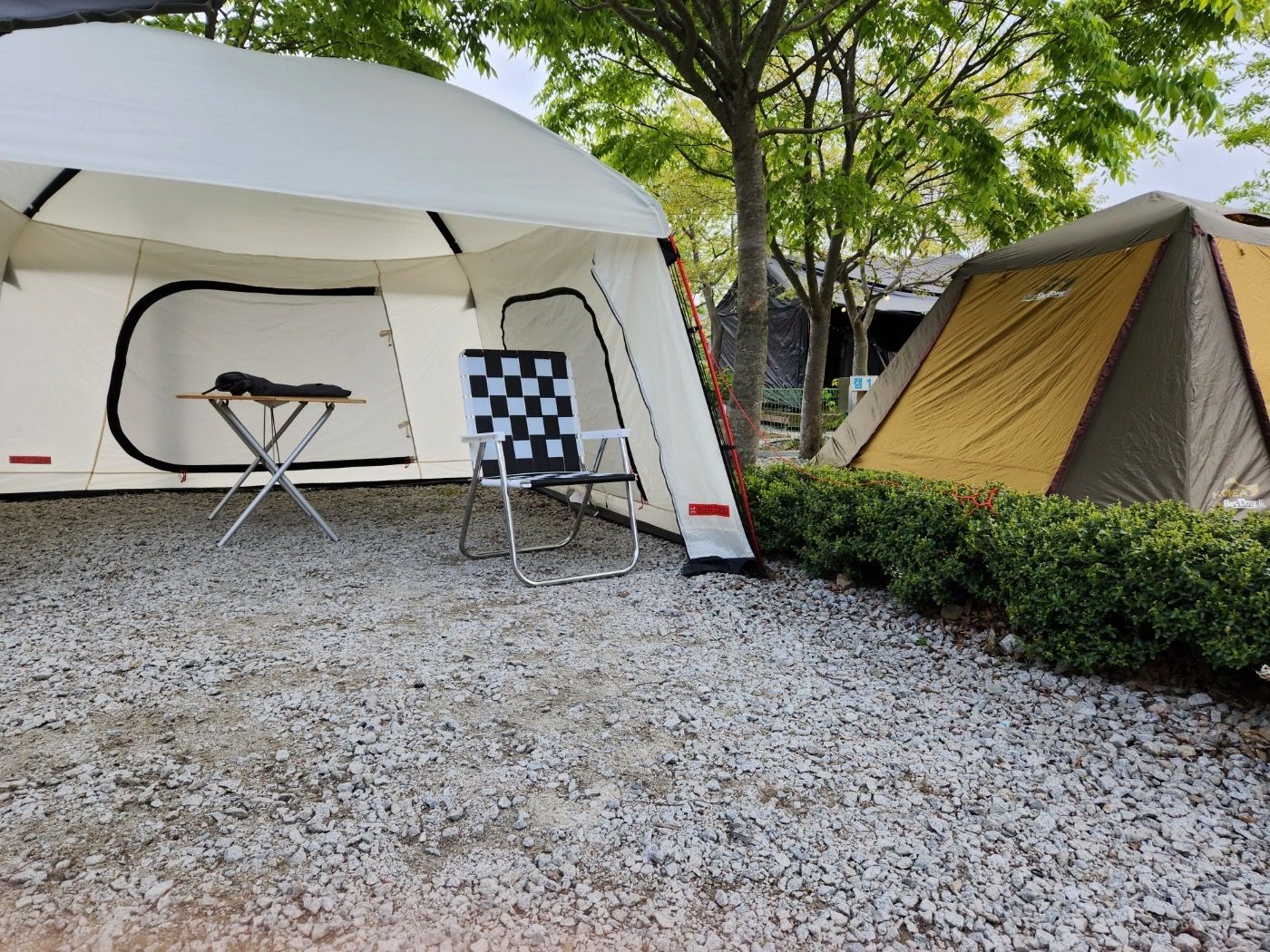 마 사이트였는데 매점, 화장실, 샤워실도 가깝고 위에 가림막도 있어서 바람/비도 잘막아줘 최고의 자리였던거 같습니다.