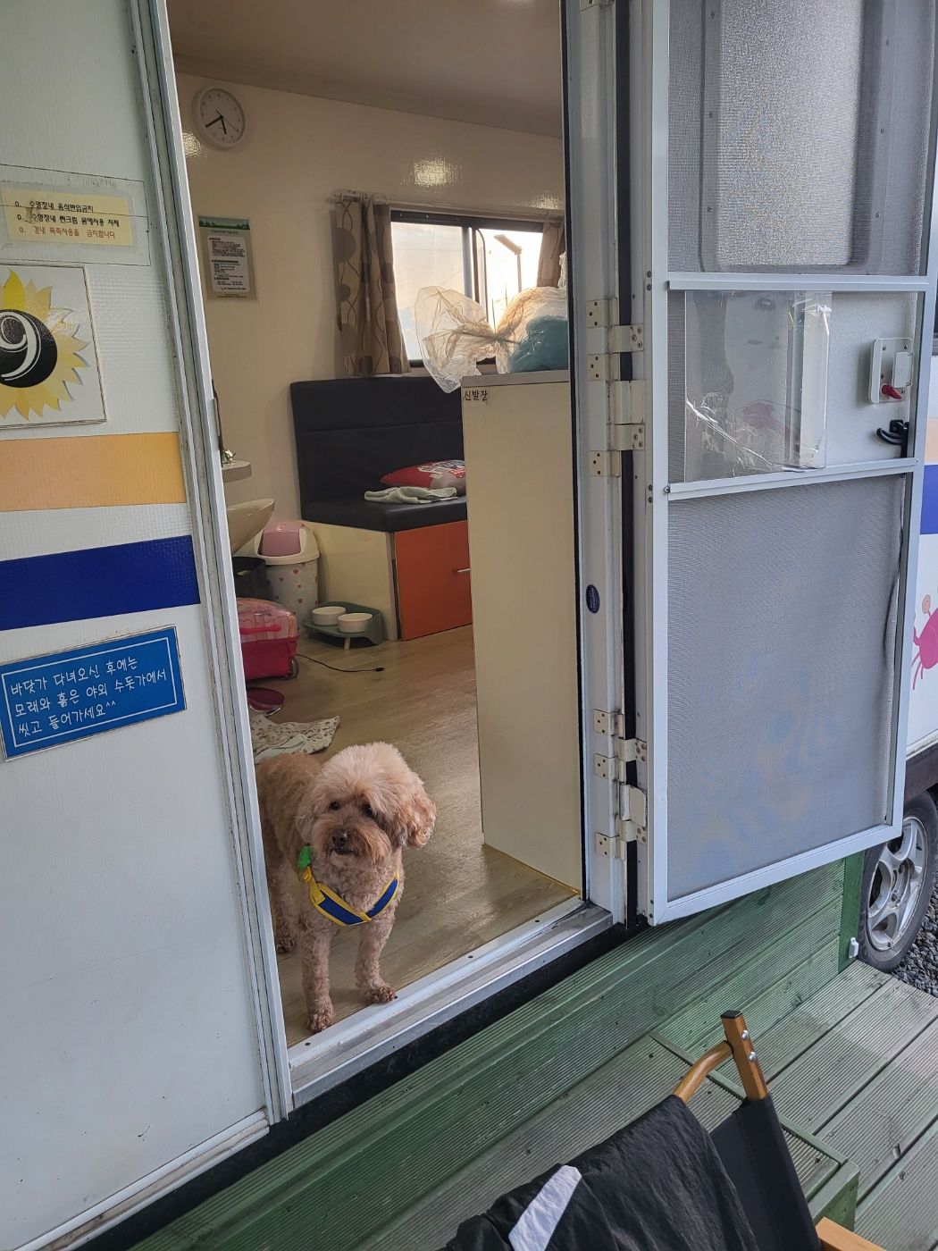 댕댕이랑 첫 여행.. 엄청 검색하며 찾은 곳입니다 ^^! 바다도 가깝고 조용하고.. 하루 예약했다가 좋아서 하루 더 있었어요! 독립된 인조잔디 공간이 좋았구요! 카라반이랑 연결이 되는 구조는 아니었지만 저희 카라반 바로 앞이라 괜찮았습니다~ ! 초딩 두 딸이 물놀이를 너무 좋아해서 사람만 수영할 수 있는 곳으로 찾고 있었는데.. 이틀 내내 실컷 물놀이하고.. 물도 깨끗해서 피부 트러블도 없었어요~! 카라반 내부도 사장님께서 깔끔하신지 다 깨끗했어요! 침구도 화장실도 주방도~!! ^^ 이층침대에 아이 한 명이 자고 아래 침대에 어른 둘에 아이 한 명 잤는데 넓었습니다~! 화장실 수압도 괜찮았고 바베큐, 불멍도 넘 좋았고.. 다음에 또 재방문 하고 싶어요!! 사장님도 친절하셨고 넘 즐거운 여행이었습니다^^