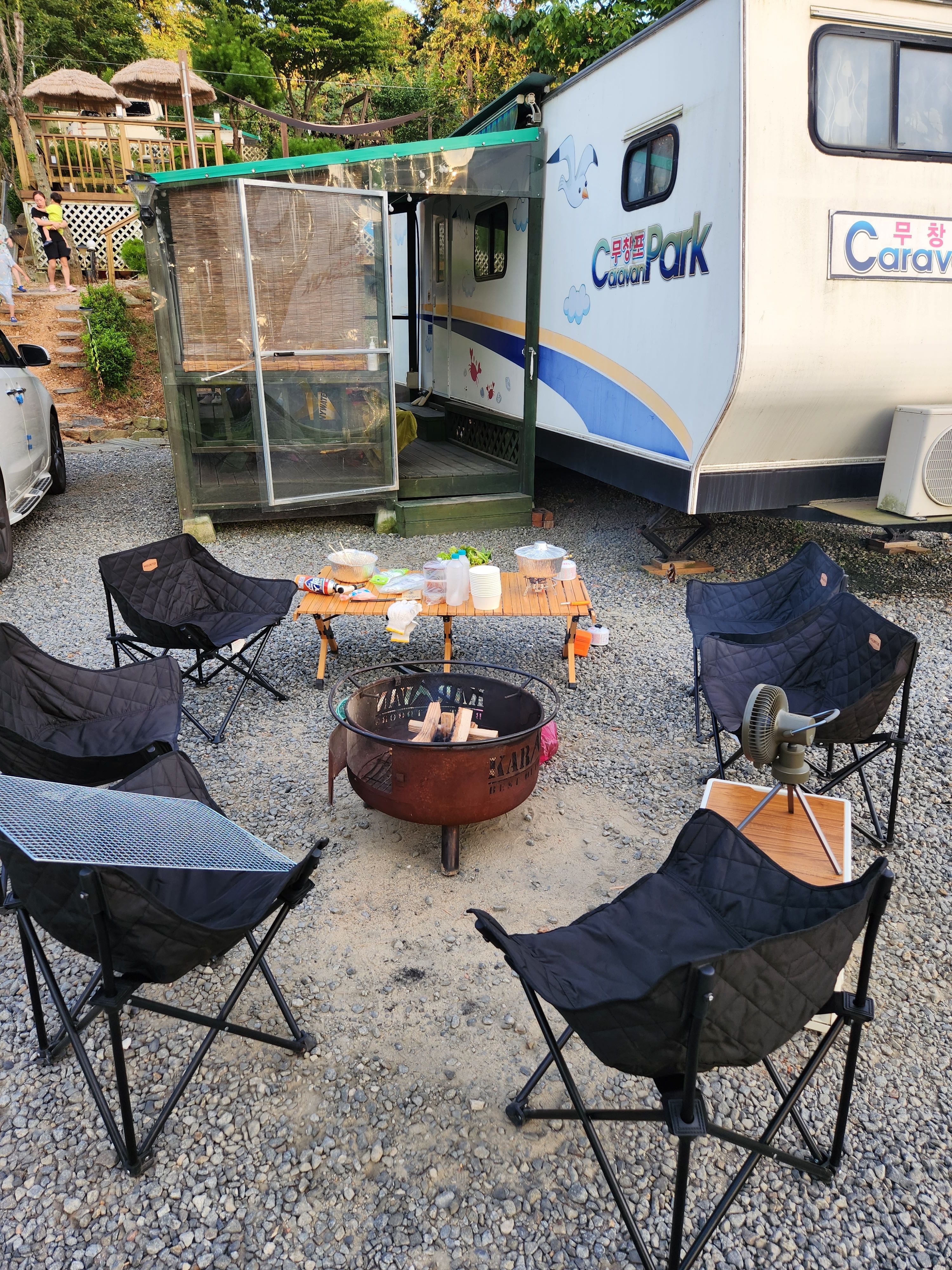 2박3일로 예약하고 갔는데 태풍때문에 엄청 걱정했었어요~!도착해서 보니 진짜 깨끗했고 뚜벅이 가족여행이었지만 콜택시타고 왔다갔다 잘 했습니다~택시비13000원정도 기차역에서 나온다고 보면 되고 도착해서 강아지랑 고라니도 봤네요!시설 깨끗하고 관리도 잘 되어 있어서 좋았습니다.수영장에서 신나게 수영하고 불멍도 두번이나 했네요 사장님이 조금 번거로우셨을 것 같지만ᆢㅠ정말 덕분에 재미있게 잘 지내다가 왔습니다. 수영하고 월풀 할 때 짱!!수건도 넉넉 이불도 깨끗 다음에는 태풍피해서 꼭 갯벌체험도 해야겠어요!!!그게 아쉬웠어요 걸어서 편의점가려면 조금 힘들긴하지만 운동삼아 다녀오면 할 만 합니다~!애기들이 놀 수 있는 시설도 잘 되어 있고~!절대 후회없을 여행!카라반파크~!다음에 또 뵈요!!