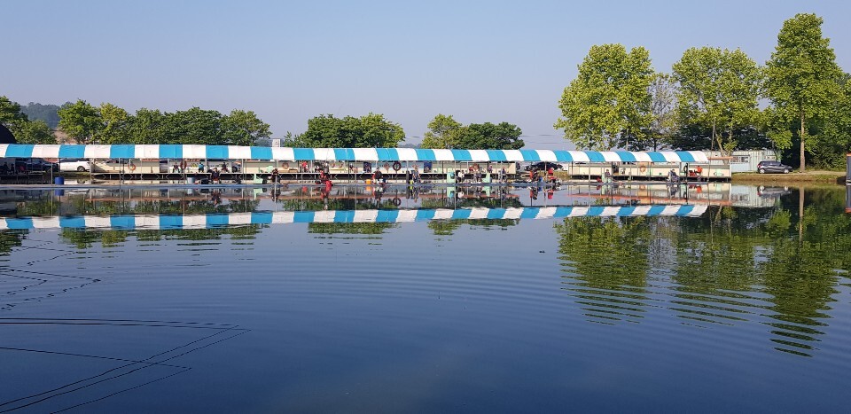 | 체험프로그램 | 낚시체험 | | 이용요금 | 잡이터 40,000원, 손맛터 20,000원 ※ 이용요금은 변동될 수 있으므로 홈페이지 참조 또는 전화 문의 요망 | | 참고사항 | 수상좌대 포함 낚시터 전 구역 숯불, 번개탄 사용 불가 | | 주요시설 | 수상좌대, 저수지, 잔교 좌대 | | 부대시설 | 식당, 매점, 휴게실, 주차장 안전시설 설비사항 : 안전보험가입, 상비약 보유 |