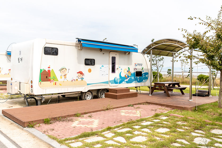 무안황토갯벌랜드 오토캠핑장은 전남 무안군 해제면에 있다. 무안군청을 기점으로 20Km가량 떨어져 있다. 자동차를 타고 공항로, 송마로, 현해로 차례로 거치면 닿는다. 도착까지 걸리는 시간은 30분 안팎이다. 캠핑장은 무안의 대표 관광지인 무안항토갯벌랜드 내부에 있다. 이 덕분에 갯벌 체험장, 일출 전망대, 카페, 식당 등 캠핑 외 즐길 거리가 많다. 캠핑장에는 카라반을 비롯해 자동차 야영장을 마련했다. 카라반 내부에는 침대, TV, 에어컨, 취사도구, 식기류, 개수대, 화장실, 샤워장 등이 있다. 외부 전용 데크에는 테이블 일체형 의자가 있어 바비큐가 가능하다. 자동차 야영장은 모두 37면이며, 바닥은 잔디와 데크 두 가지 형태다. 실시간 온라인 예약이 가능하다.