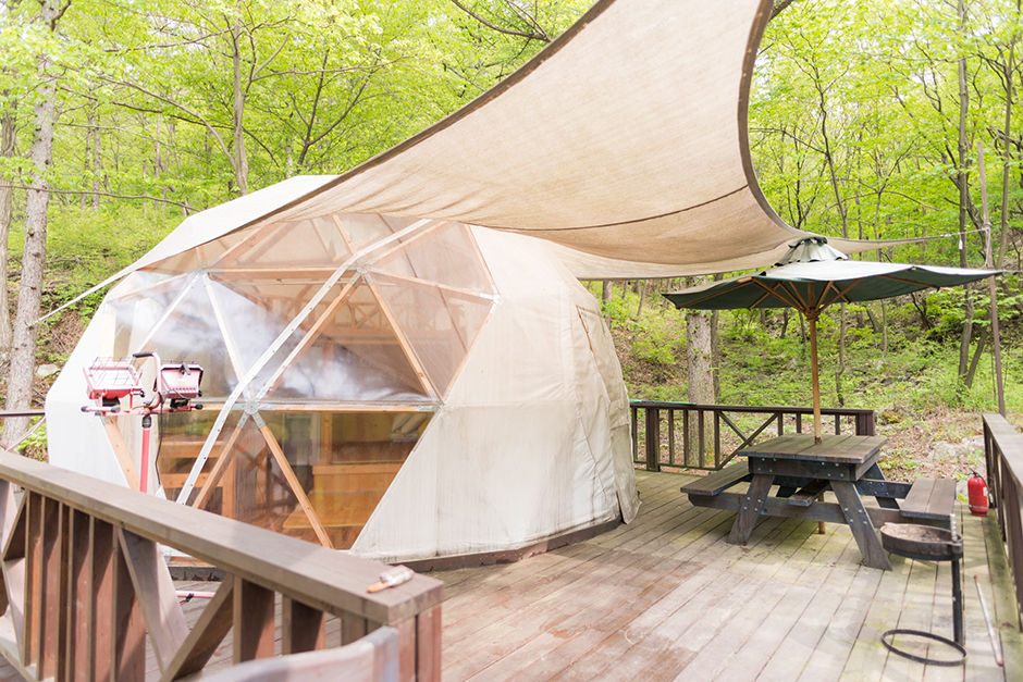 대둔산자연휴양림캠핑장은 충남 금산군 진산면에 있다. 금산군청을 기점으로 16㎞가량 떨어졌다. 자동차를 타고 도곡로, 진산로, 대둔산로를 번갈아 달리면 닿는다. 도착까지 걸리는 시간은 35분 안팎이다. 이곳은 대둔산자연휴양림 내에 위치하여 숲의 싱그러움을 만끽할 수 있다. 휴양림 안에 정해진 산책로가 있지만, 산책로를 찾지 않고 발걸음을 옮겨도 수목이 뿜는 피톤치드로 심신을 위로할 수 있다. 캠핑장에는 글램핑 8개 동이 있다. 글램핑 객실 내부는 침대, 탁자, 소파, 개수대, 냉장고 등 일상생활을 해도 전혀 불편함이 없을 물품으로 채웠다. 외부 전용 공간에는 파라솔 아래 바비큐 시설을 구비했다. 사계절 내내 운영하며 예약은 온라인 실시간으로 가능하다. 캠핑장과 가까운 거리에 에딘버러CC, 만인산 등이 있어 연계 관광이 수월하다.