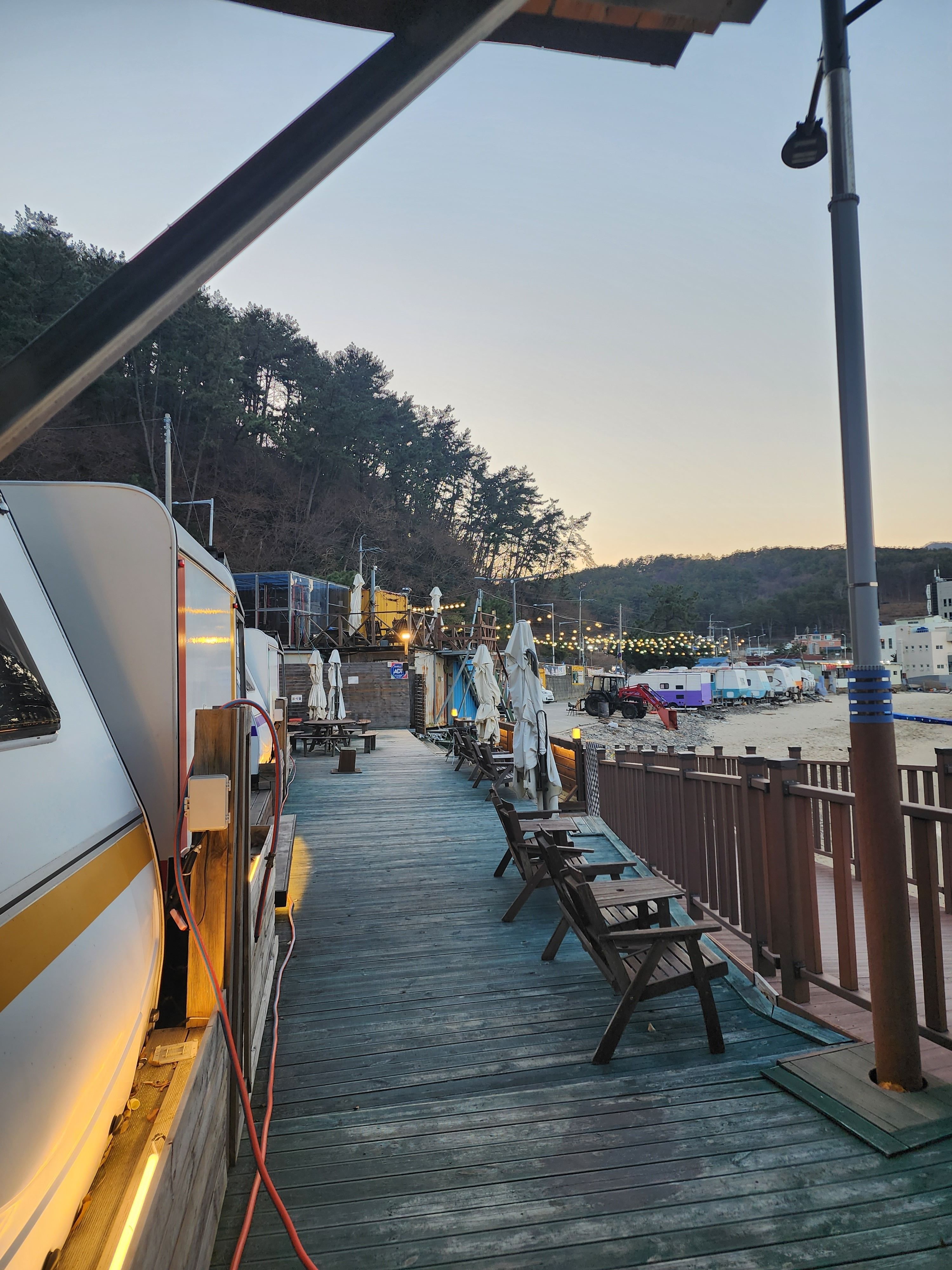 바다 바로앞에 정말 좋은데 카라반 안에 화장실 냄새.. 각오하고 갔는데도 힘들었네요ㅜ 그거 빼고는 잘때 춥지 않게 잘자구 좋았어요.
