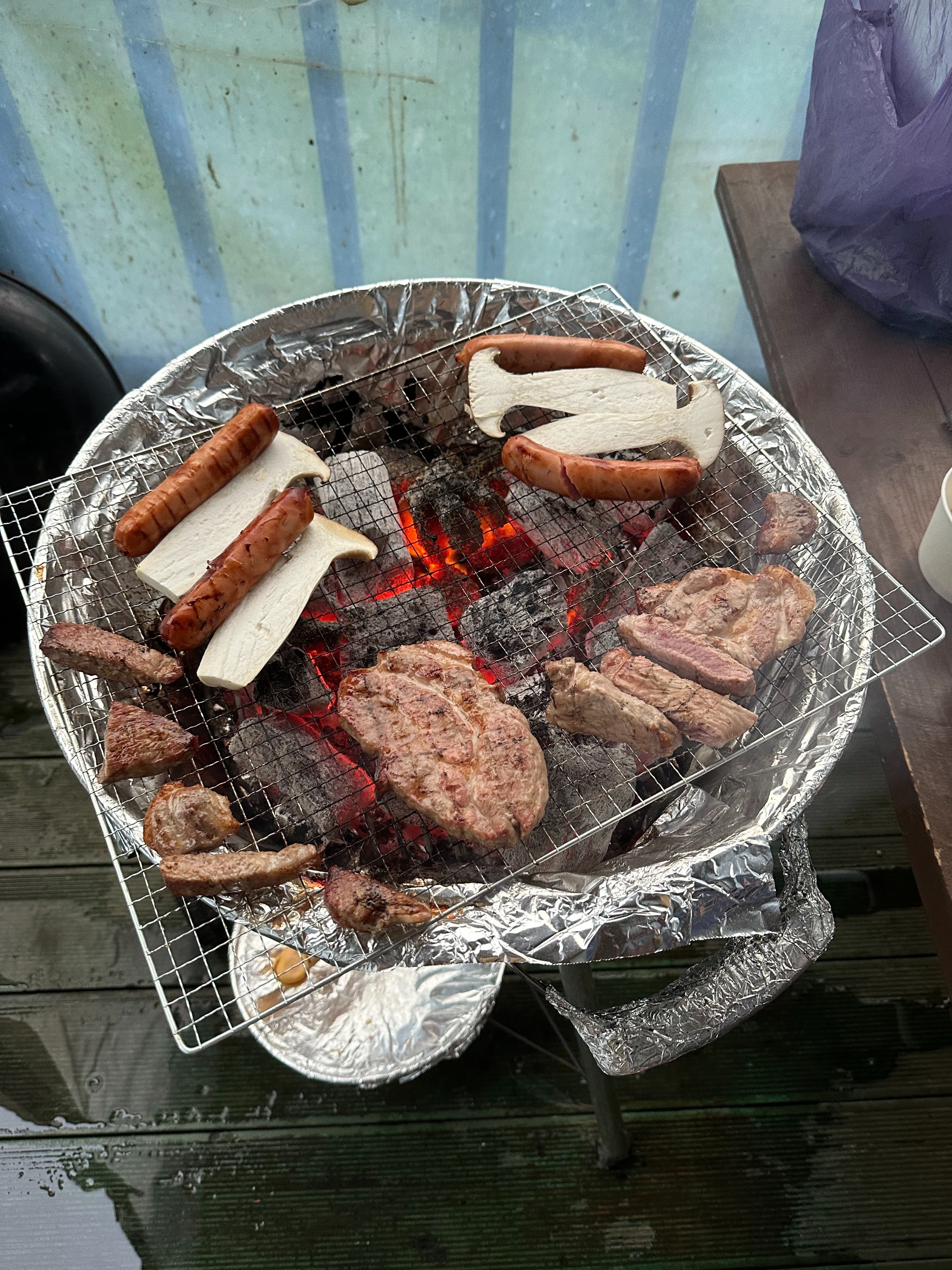 비가 와서 여로모로 걱정이였는데 천막이 쳐져있어서 비 맞지 않고 바베큐도 할 수 있었고.. 사장님이