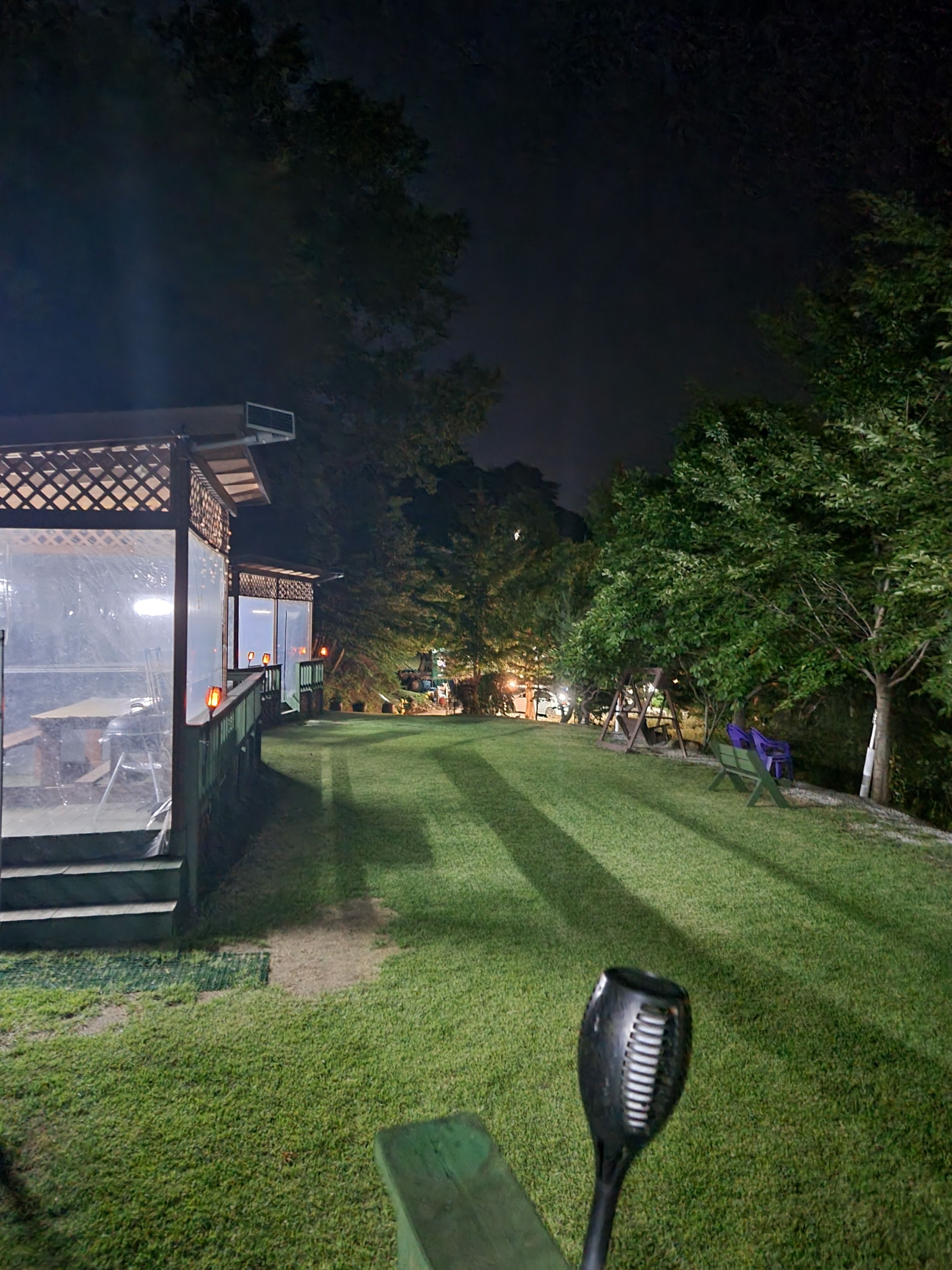 그릴도 빌려주셔서 덕분에… 따로 구매해서 간 장작에 불멍도 했습니다^^* 꿉꿉한 캠핑이 되지 않을가 걱정했는데 난방도 잘 되고, 온수도 뜨끈 뜨끈!!