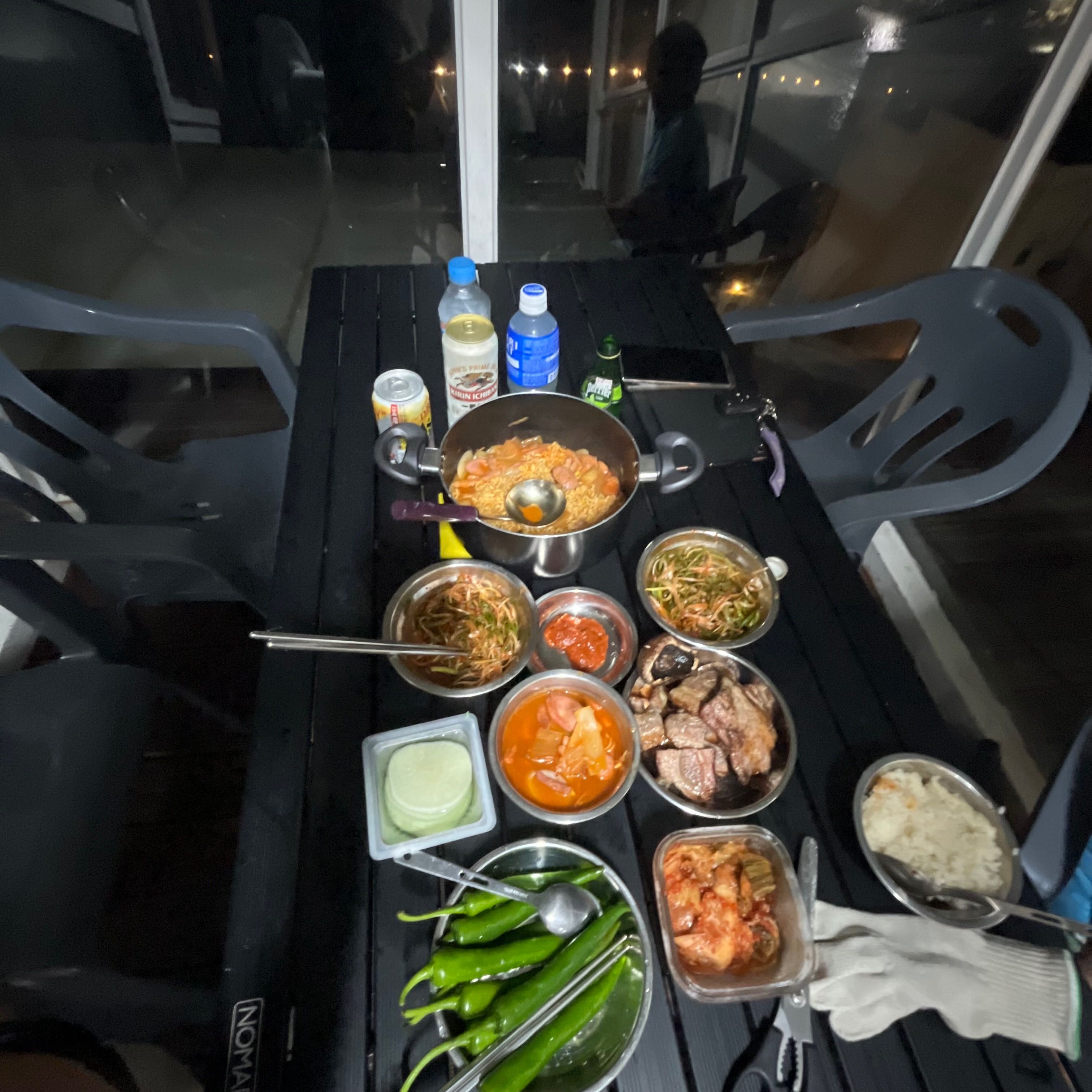 날씨도 좋았구요 일찍도착했는데 다행이 저희룸은 정리되어있어서 사장님배려로 짐과 음식을 미리넣어놓았어요!감사합니다😁