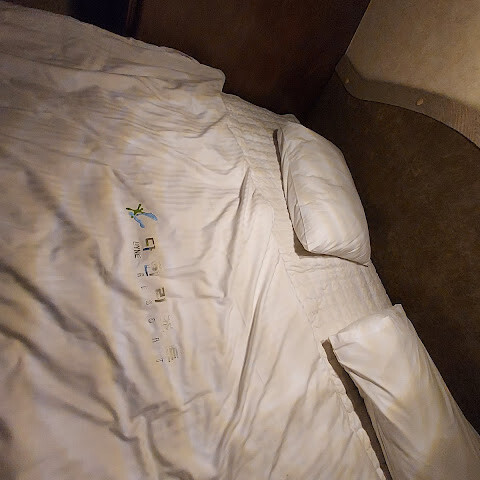 방 자체는 깔끔하고 정돈되어 있었고, 자전거를 타며 긴 하루를 보낸 후 아늑한 분위기가 반갑게 맞이해 주었습니다. 따뜻한 방은 우리를 편안하게 해 주는 좋은 손길이었습니다. 다만, 목욕타올은 없고 핸드타월 2개만 제공되어 실망스러웠습니다. 다행히 키티가 일회용 수건을 가져왔고 우리는 이를 사용할 수 있었습니다. 게다가 칫솔이나 치약도 제공되지 않았고, 샤워 후 발을 닦을 발 수건도 없었습니다. 또한 매트리스 보호대가 침대 시트 아래가 아닌 위에 놓여 있다는 점도 이상하다는 것을 알았습니다.