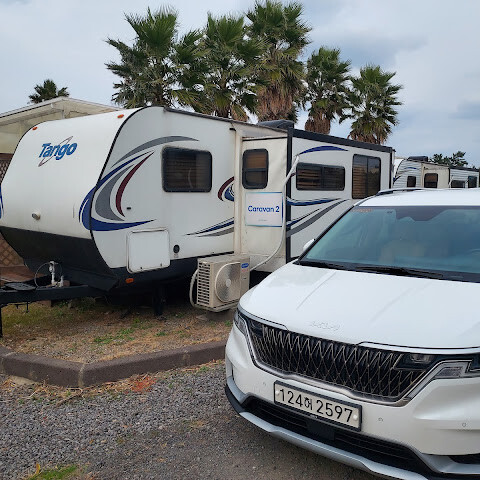 아이들에게 카라반에서 자는 경험을 시켜주고 싶어서 카라반 객실을 예약했습니다. 카라반 이용률이 낮았는지, 카라반 관리 상태는 그다지 좋지 않았습니다. 내부는 나름 깨끗하고 정돈되어 있었지만, 시설은 많이 낡았고 침구와 매트리스는 불편했습니다. 그래도 카라반 숙박 경험이니 크게 불평할 수는 없겠죠. 겨울철이라 카라반 내부 온도를 유지할 수 있도록 휴대용 히터를 제공해 준 점은 좋았습니다. 위치는 바닷가와 가깝고 편의점도 근처에 있어서 편리했습니다.